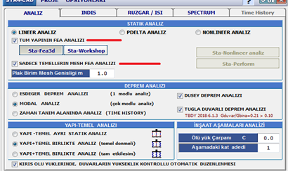 Tüm yapının fea analizi a2-a3 düzensizlikleri ve kirişsiz döşemelerde kullanımı zorunlu olduğu belirtilmiş.