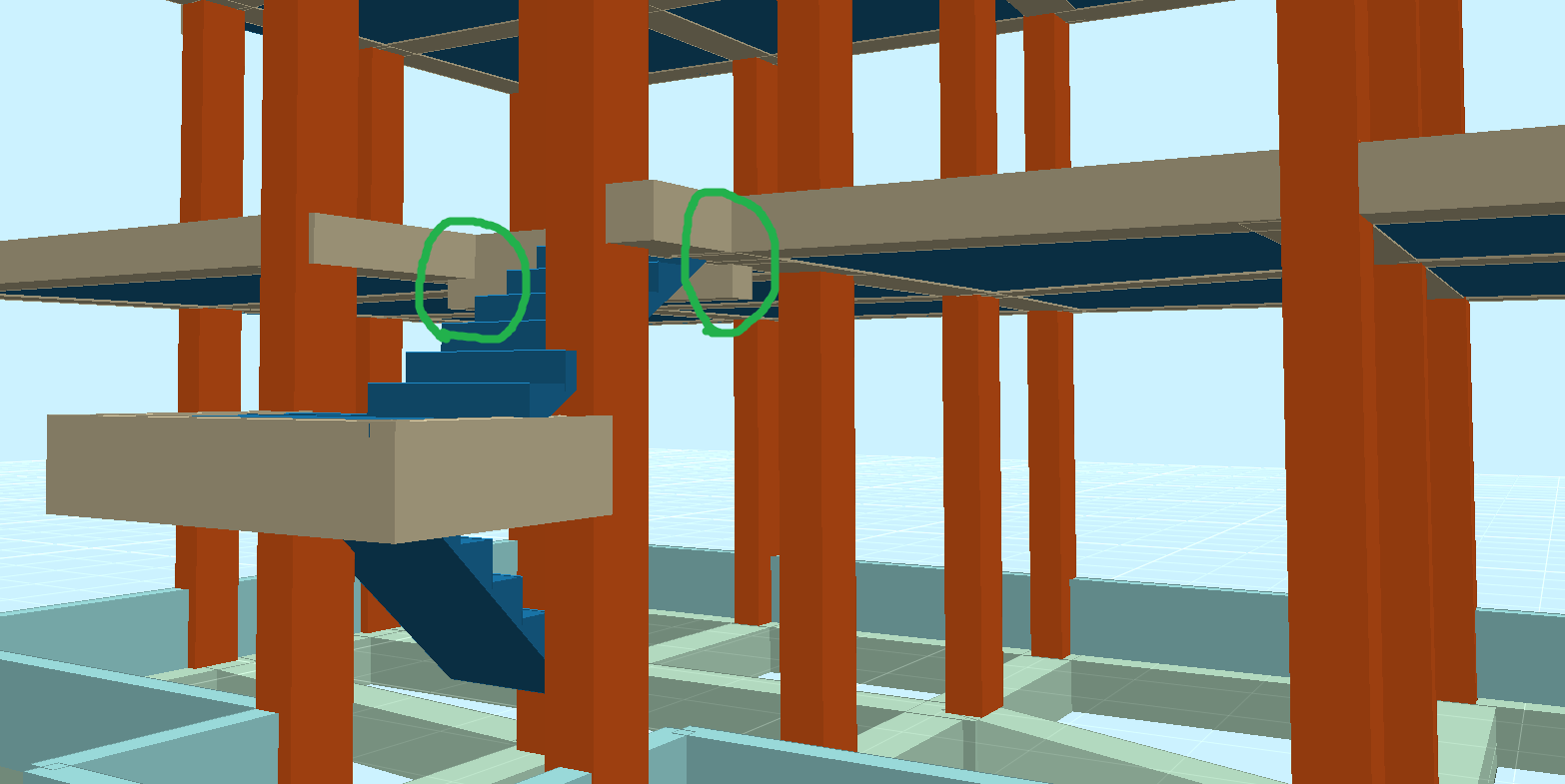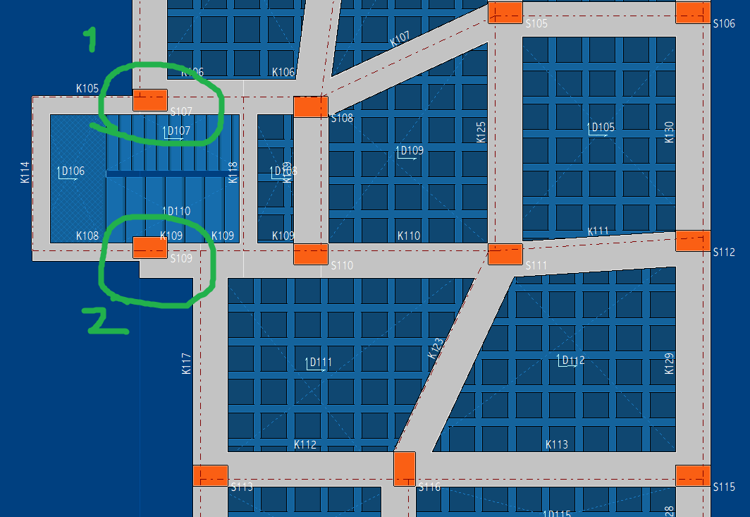 2. Merdiven sahanlığını olan yerde kolonları bir kiriş ile bağlamalıyız. Tek parça 7m kolon hiçbir yerden tutulu değil. Burada mimari ile konuşulup merdiven kiriş hizasına çekilip basamaklar tekrar başlatılabilirdi. Sahanlık biraz büyürdü.