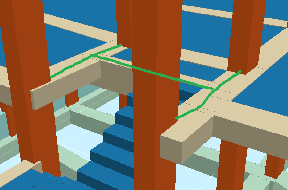 4. Merdivenin kat hizasına çıktığı yerdeki saplama kiriş uçları açıkta kaldı. İşaretli 3 kiriş de 25/50 gibi yapılmalıydı.
