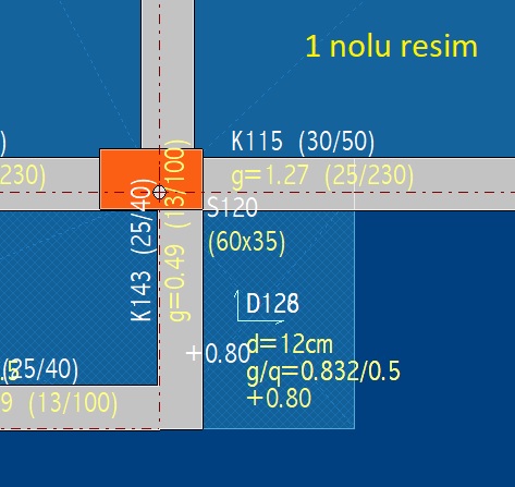 Alt taraftaki K118 kirişi ile kıyaslarsanız kesme kuvvetinin 4-5 kat daha fazla olduğunu görebilirsiniz.