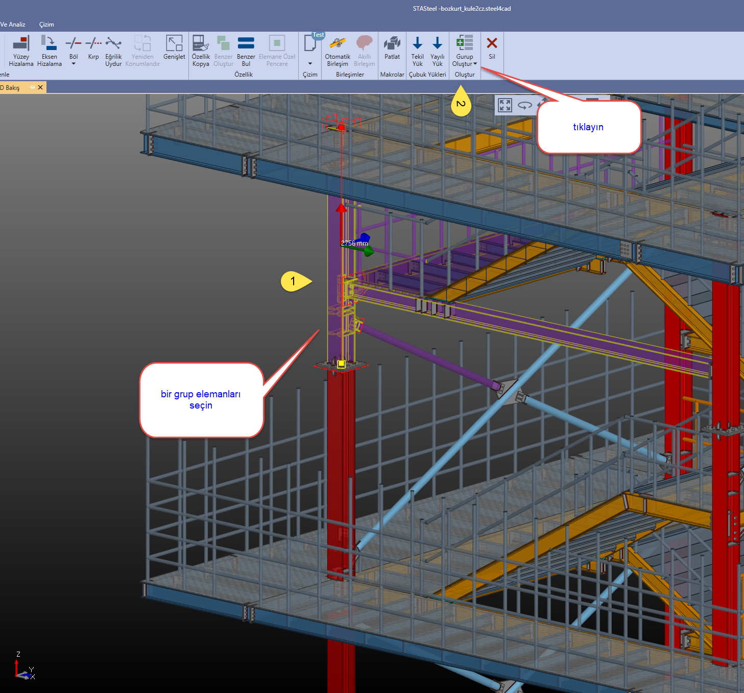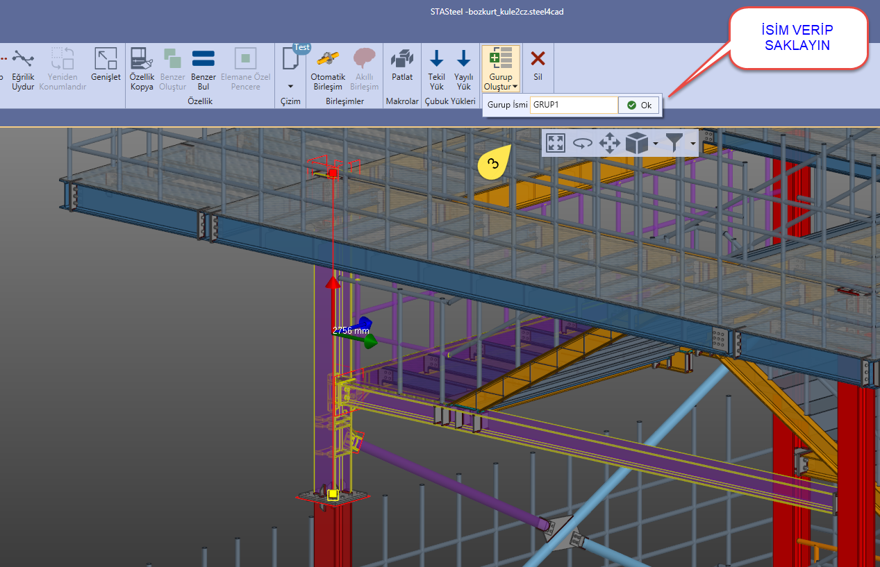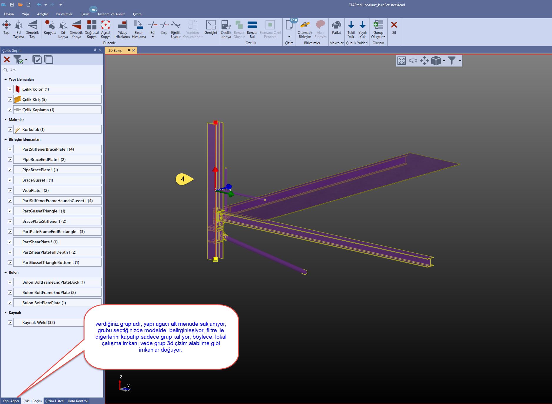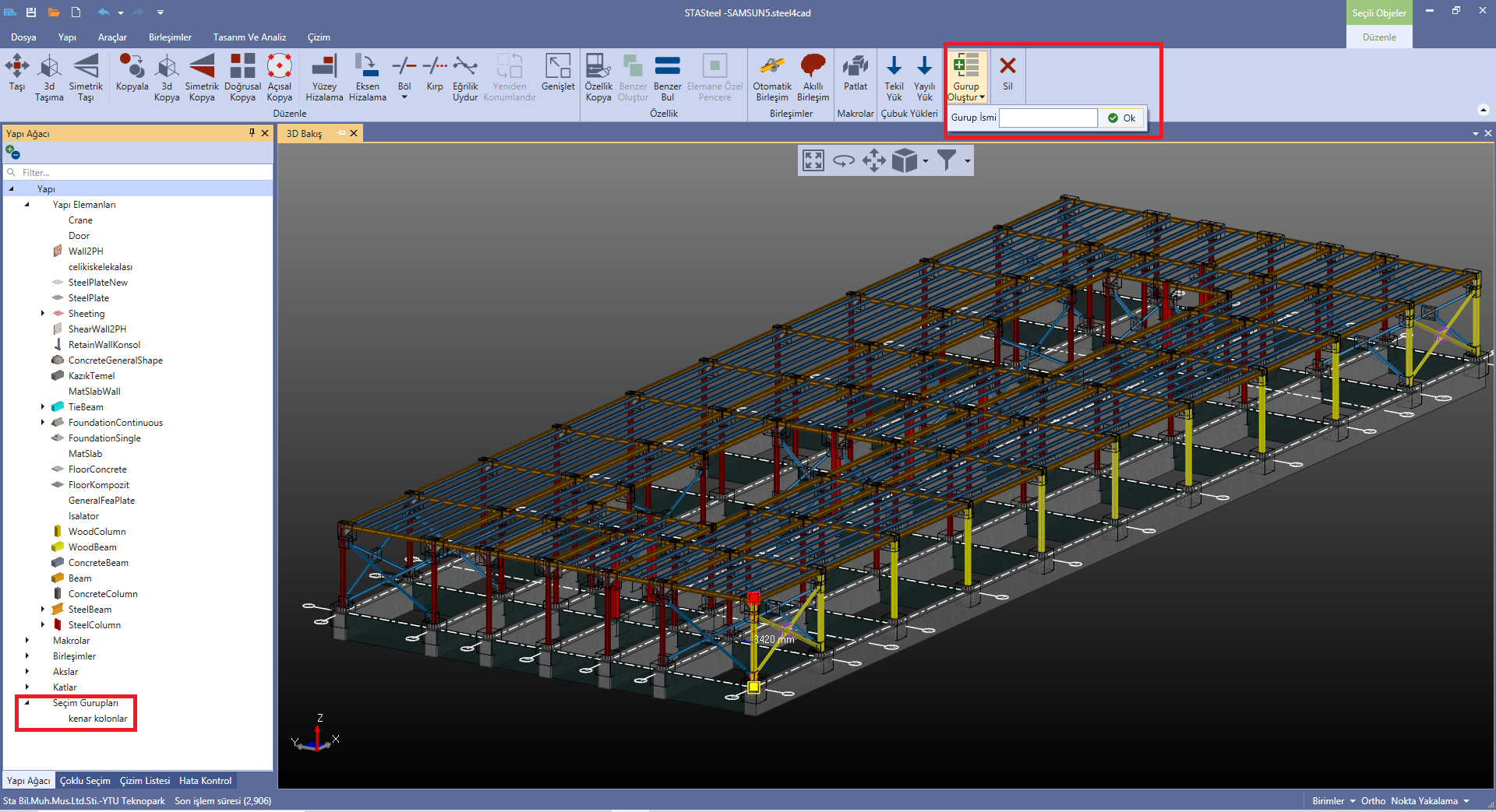 Oluşturulan guruplar yapı ağacında en alt kısımda bulunmaktadır. çift tıklayarak tekrar seçebilirsiniz veya seçiliyken delete tuşuyla silebilirsiniz.