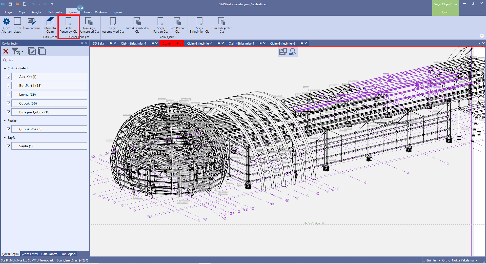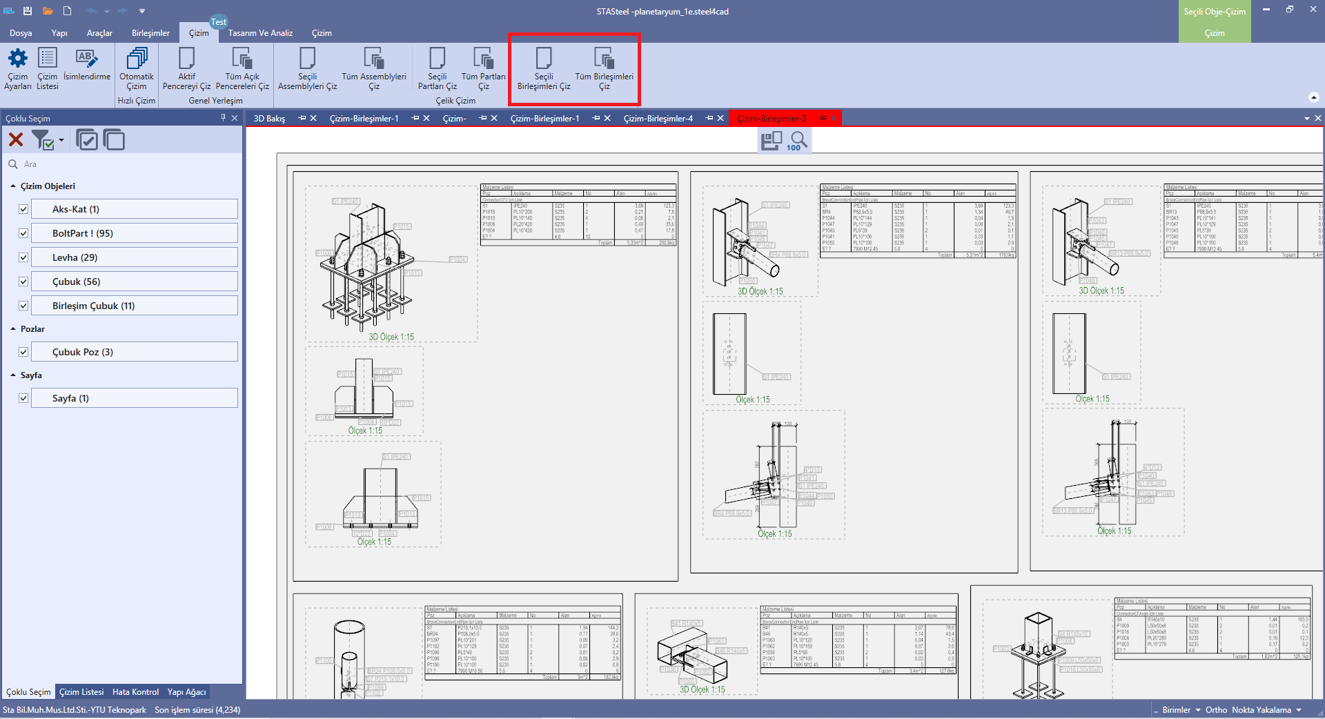 10)Şekil değiştirme tasarım sonucu gibi tüm analiz sonucu inceleme kısımlarında ekrandaki filtre aktif oldu. Örneğin tasarım sonucunda modelde kompozit döşeme varsa default olarak görünecektir. Gizlemek için ekrandaki filtre kısmındna kapatılabilir.