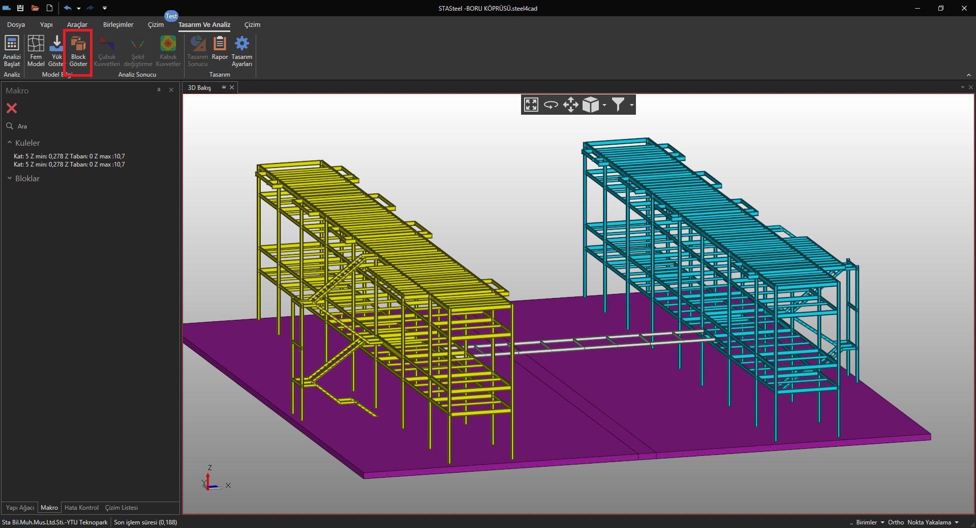Bunu yanında kat öteleme ve burulma düzensizliği veya deprem kaçıklığı gibi işlemlerde her bir bağımsız binada ayrı ayrı yapılmakta. Analiz öncesinde veya sonrasında bunu blok göster komutu ile görebilirsiniz.