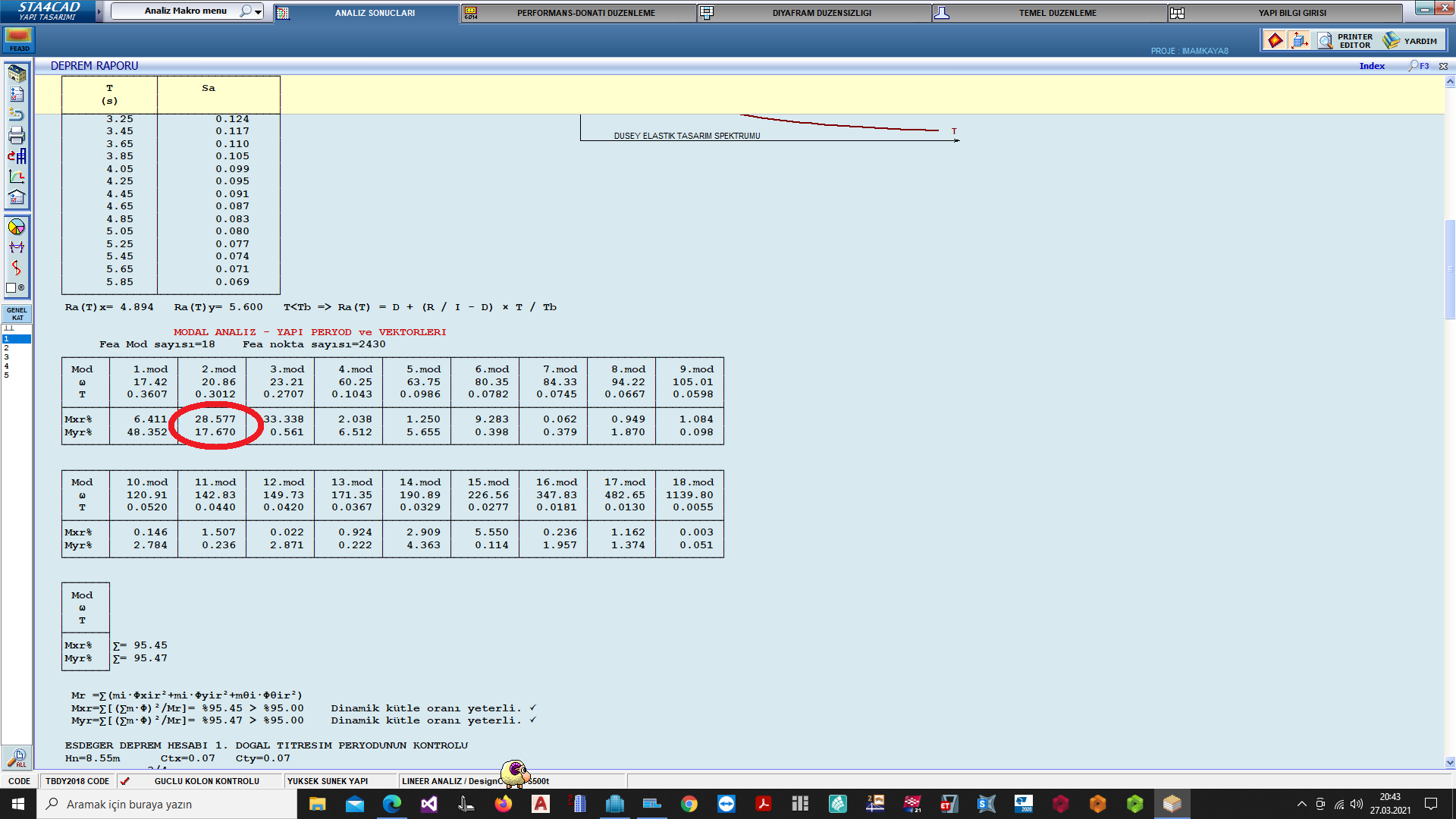 birincisi, genel deprem raporlarında 1. resimde daire içine aldığım kütle katılım oranlarının bir birine yakınlığı ile görebilirsin. (verdiğim örnekte yapı 2. modda burulmaya geçmiş)
