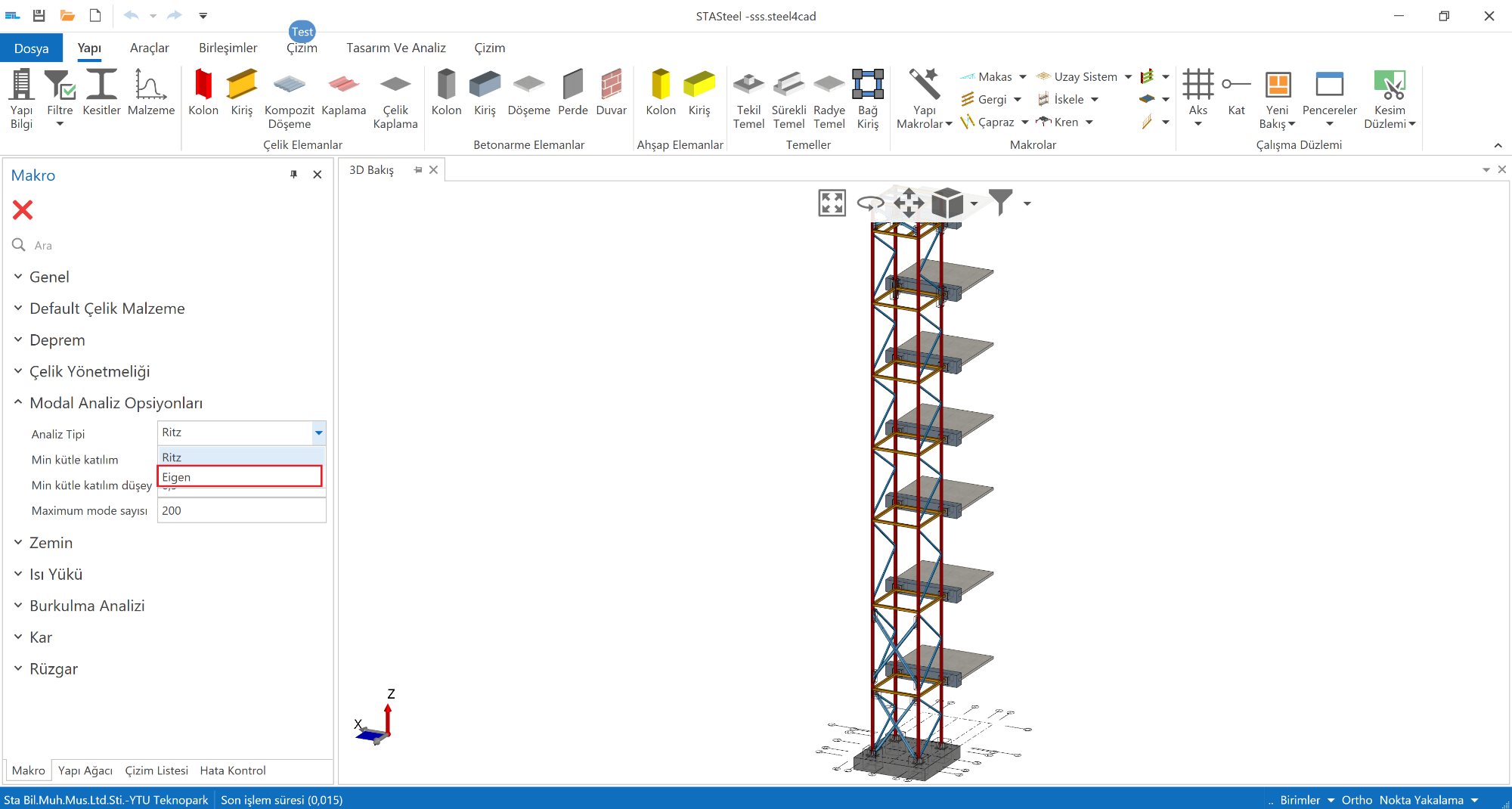 Önerimiz default ayarlarda kalması ancak isteyen kullanıcılarımız ritz vektörleri yerine normal özdeğer bulma algoritmsını kullanabilirler. Düşey deprem önemli olmayan bir yapıda yatay deprem için kullanılabilir ancak düşey depremde kesinlikle ritz vektörlerini öneriyoruz.