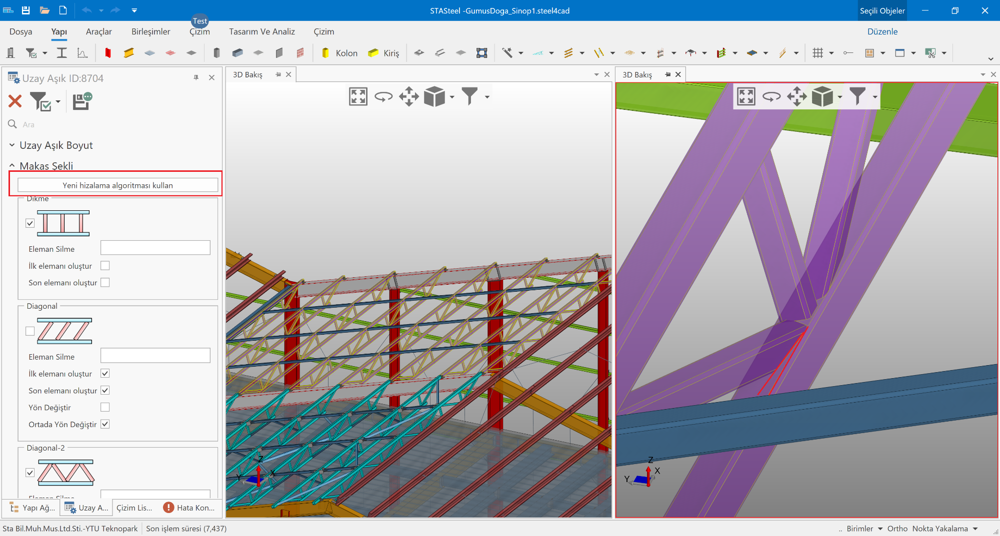 Modelleme ile ilgili kısımlar1)Genel makaslarda ve bunların kullanıldığı makas aşık gibi makrolarda makasların eğimli olduğu durumlarda çapraz elemanların açısal hizalanması ile ilgili sorun düzeltildi.