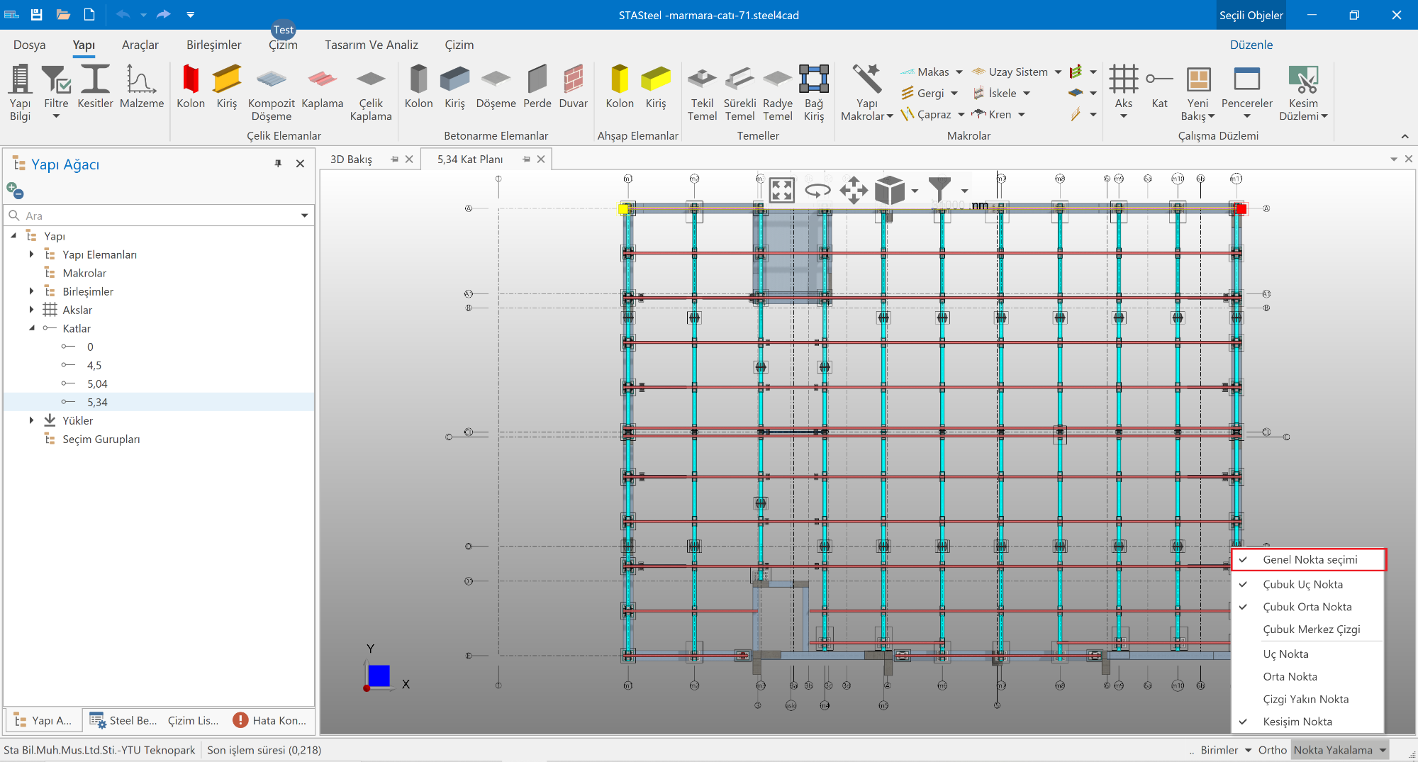 2)Son güncellemelerde nokta yakalama opsiyonlarını biraz daha genişlettik ancak henüz istediğimiz seviyeden biraz uzakta. Bu güncelleme ile opsiyonel olarak genel nokta yakalamayı açma kapatma imkanı eklendi. Genel nokta yakalama mouse aks kesişimi veya çubuğun ucu gibi yakalanabilecek bir yerdeyse değilse bile mouse üzerindeki yeri seçerek veri girişi yapmanızı sağlar.