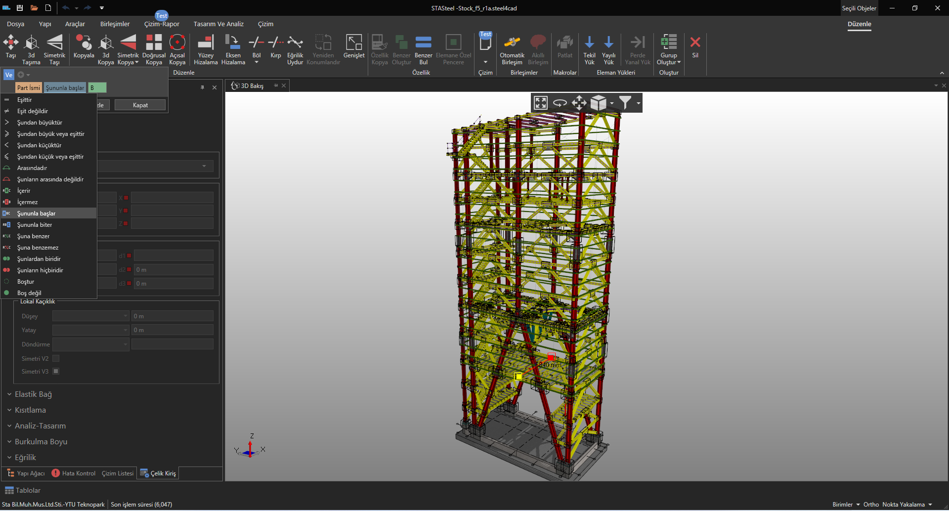 Örneğin part veya montaj isimlerinde B ile başlayanları seçmek istediğinizde ekteki gibi yapabilirsiniz.