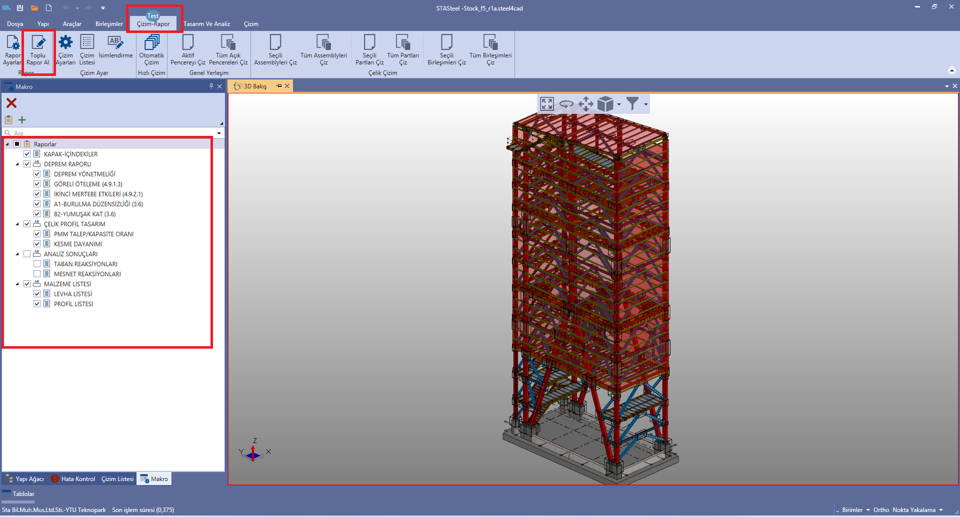 5-2)Yapı ağacının yanı sıra toplu halde seçmeli olarak rapor alma imkanı eklendi.