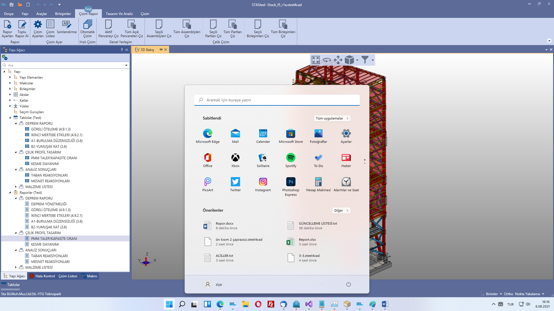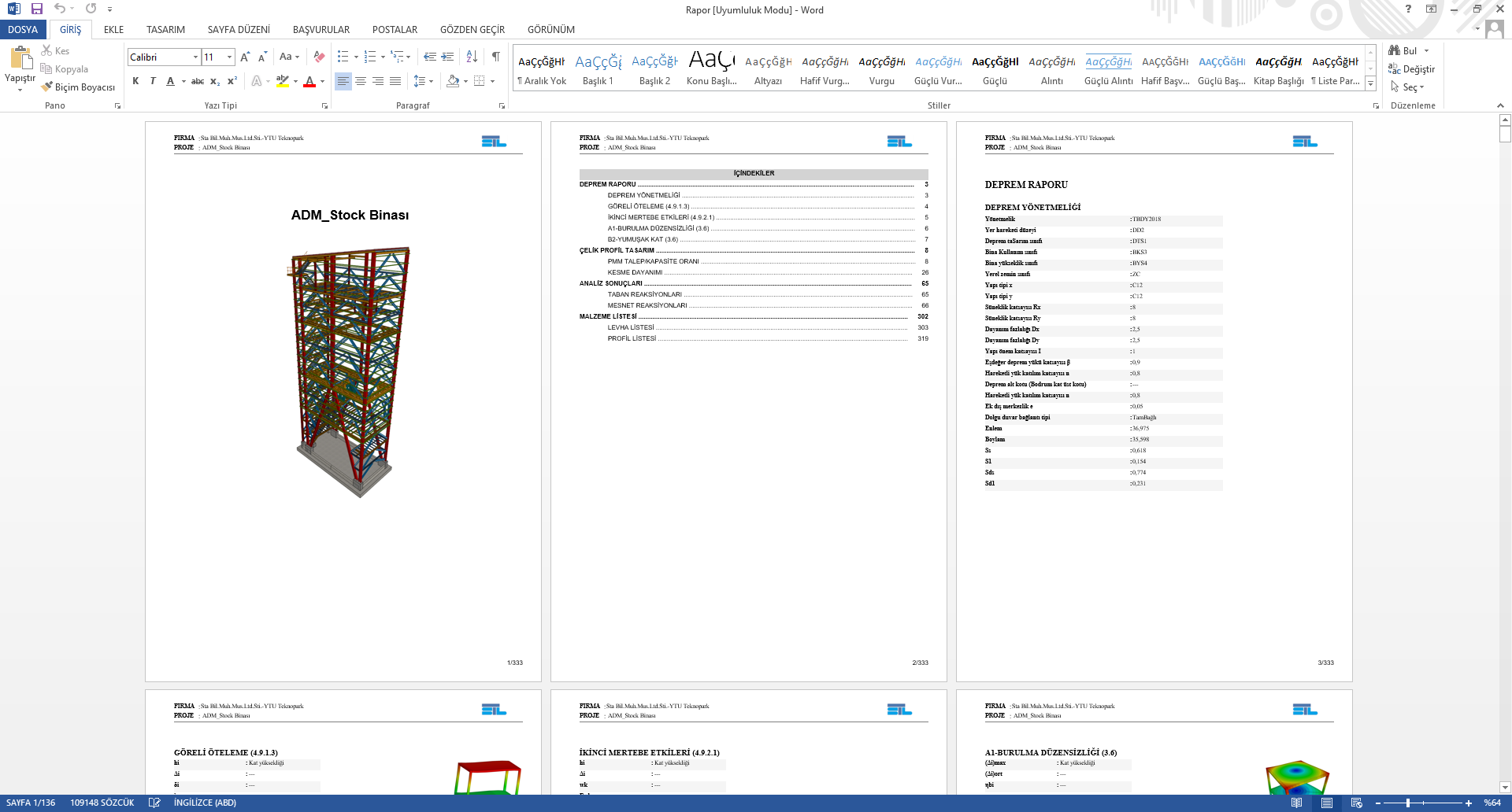 5-4)Raporların görüntülenme ekranı aşağıdaki gibidir. Sol taraftaki döküman haritası ile hızlıca ilgili yere gidebilir ve arama yapabilirsiniz.