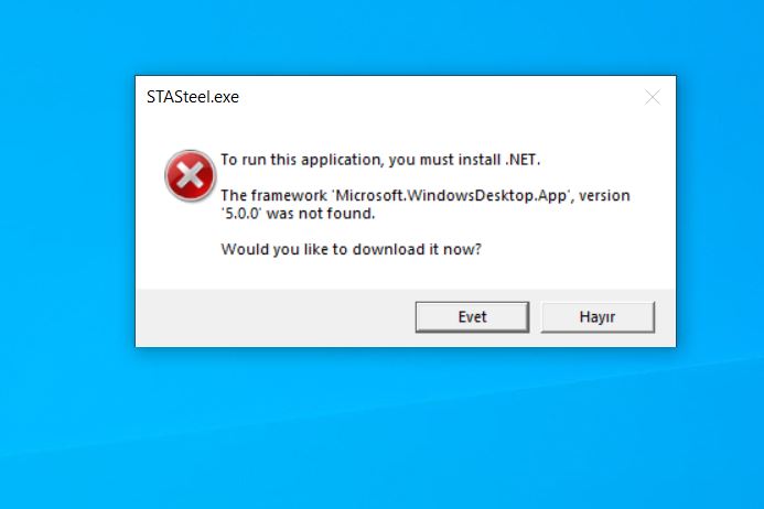 Merhaba stasteel indirip güncellemeleri ile yükledim NET run tıme yüklü olduğu halde hata veriyor