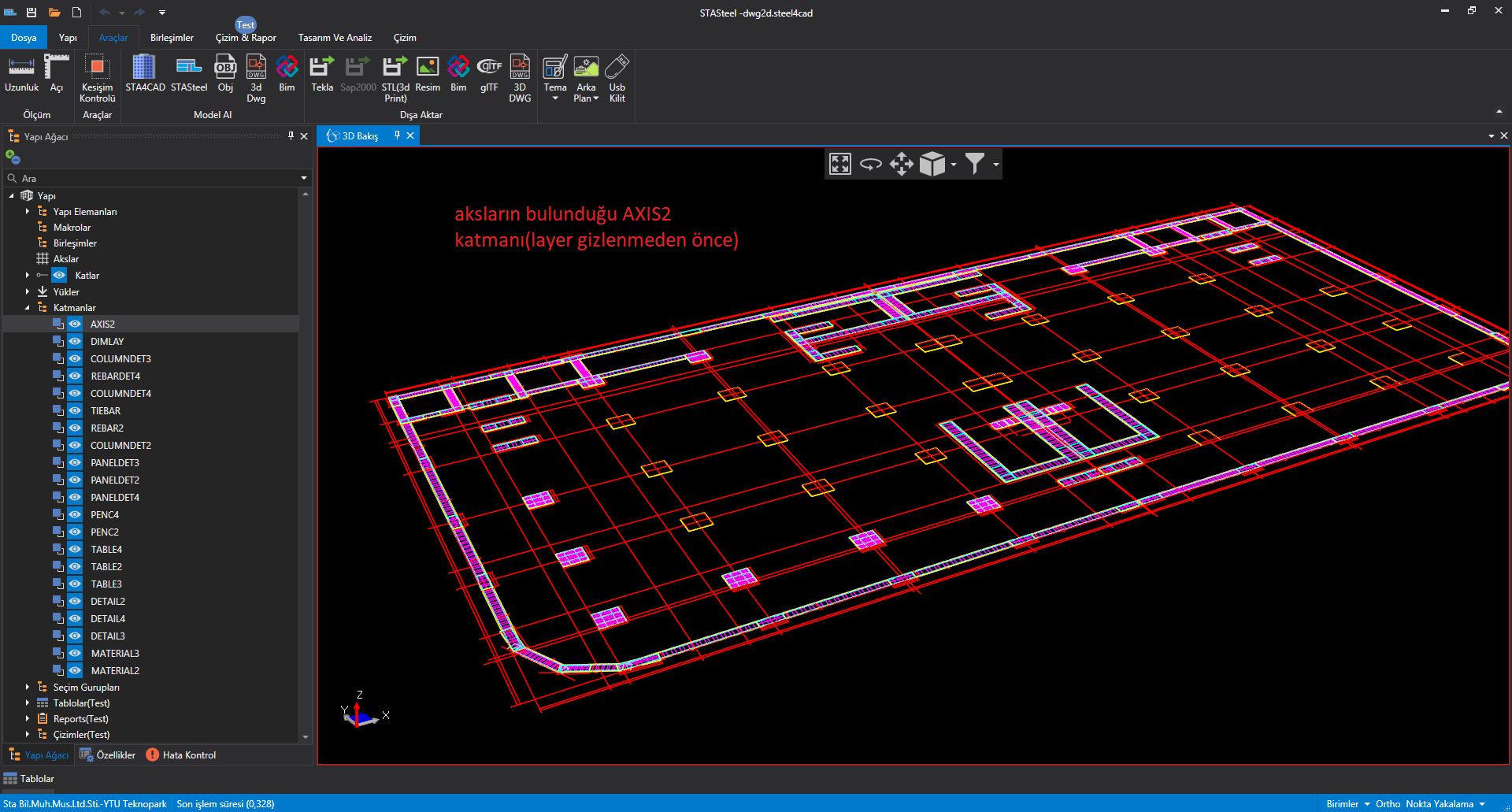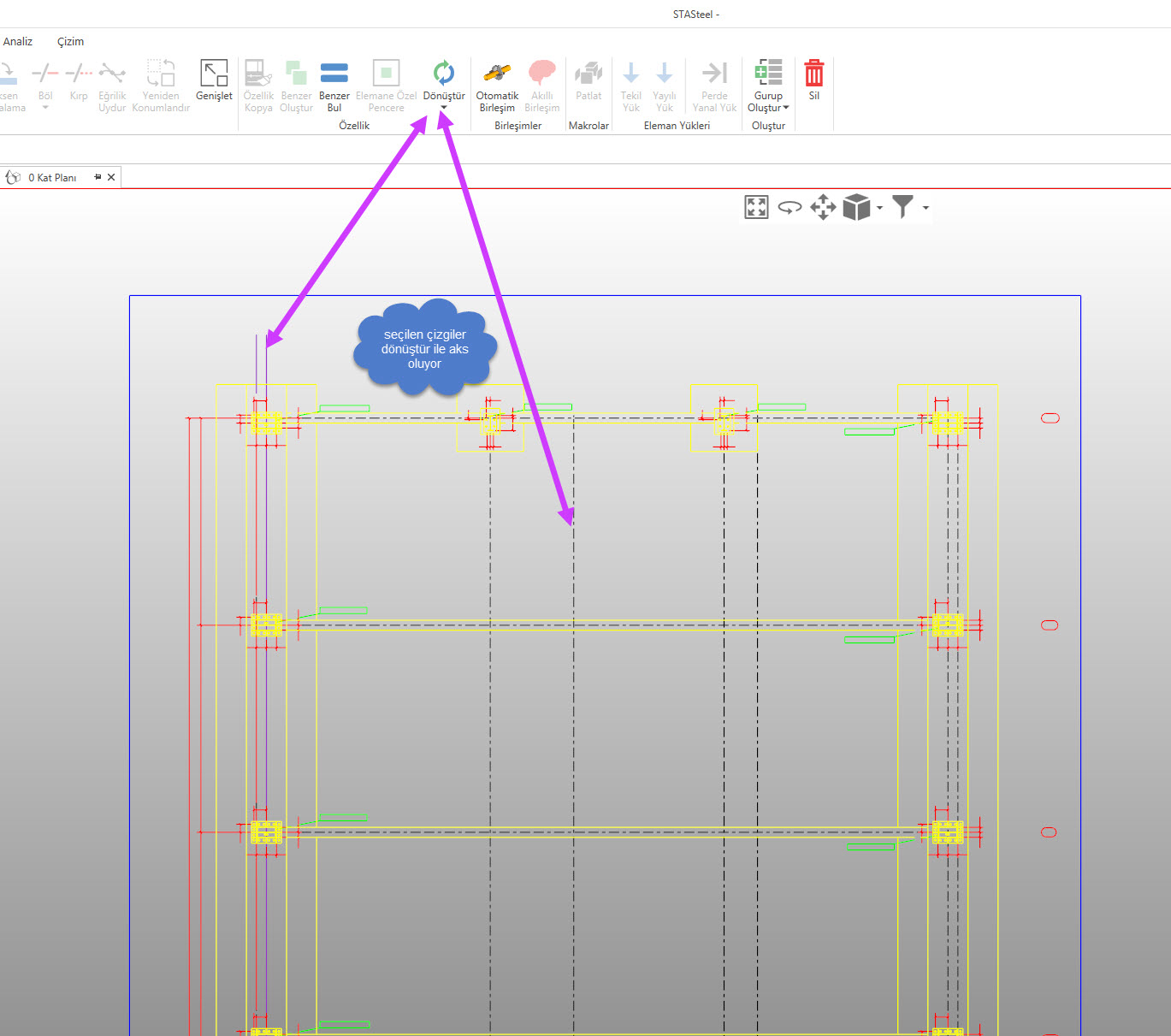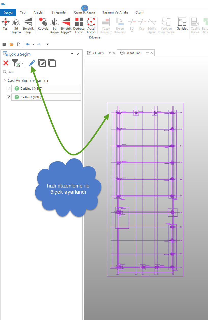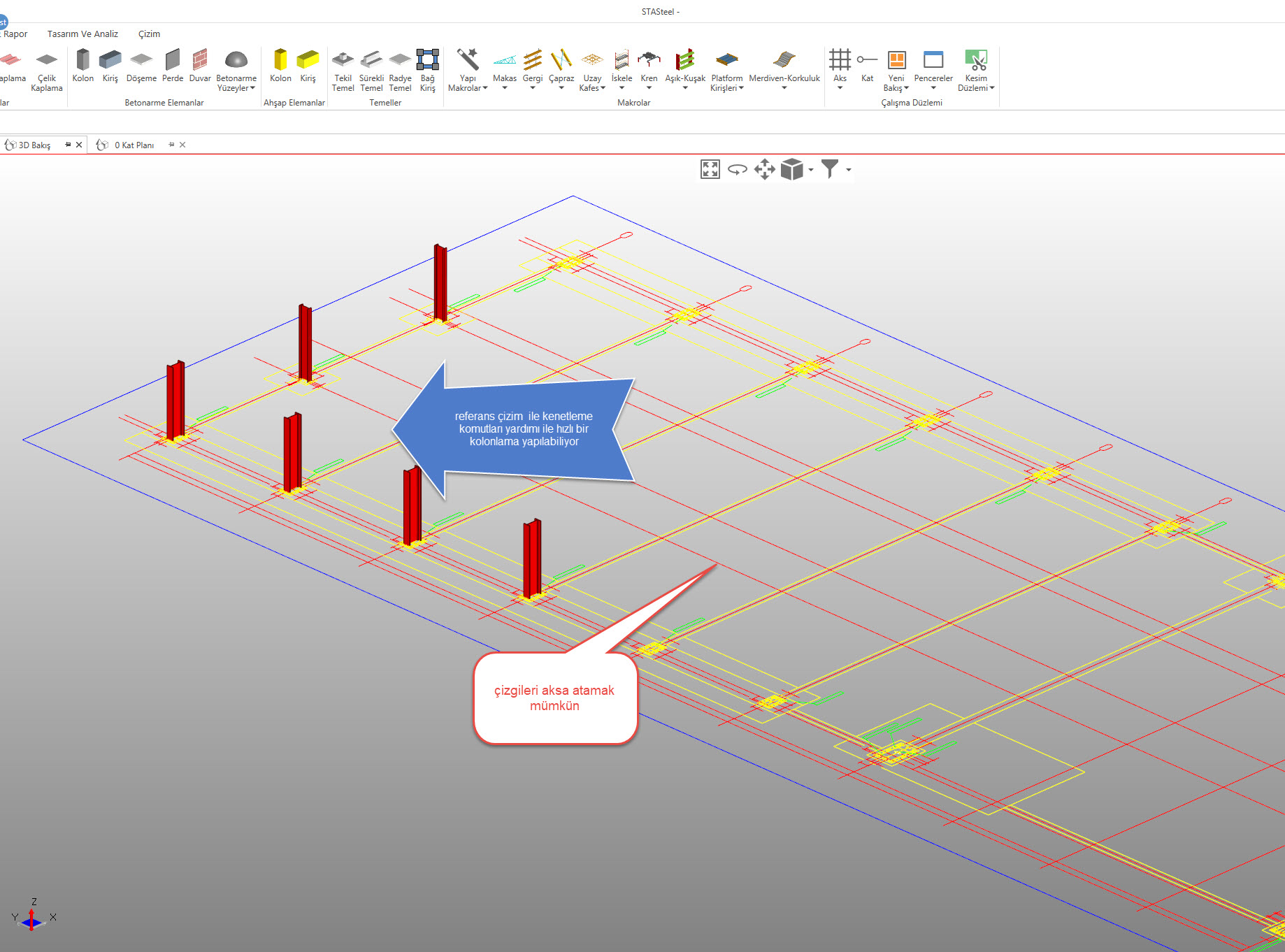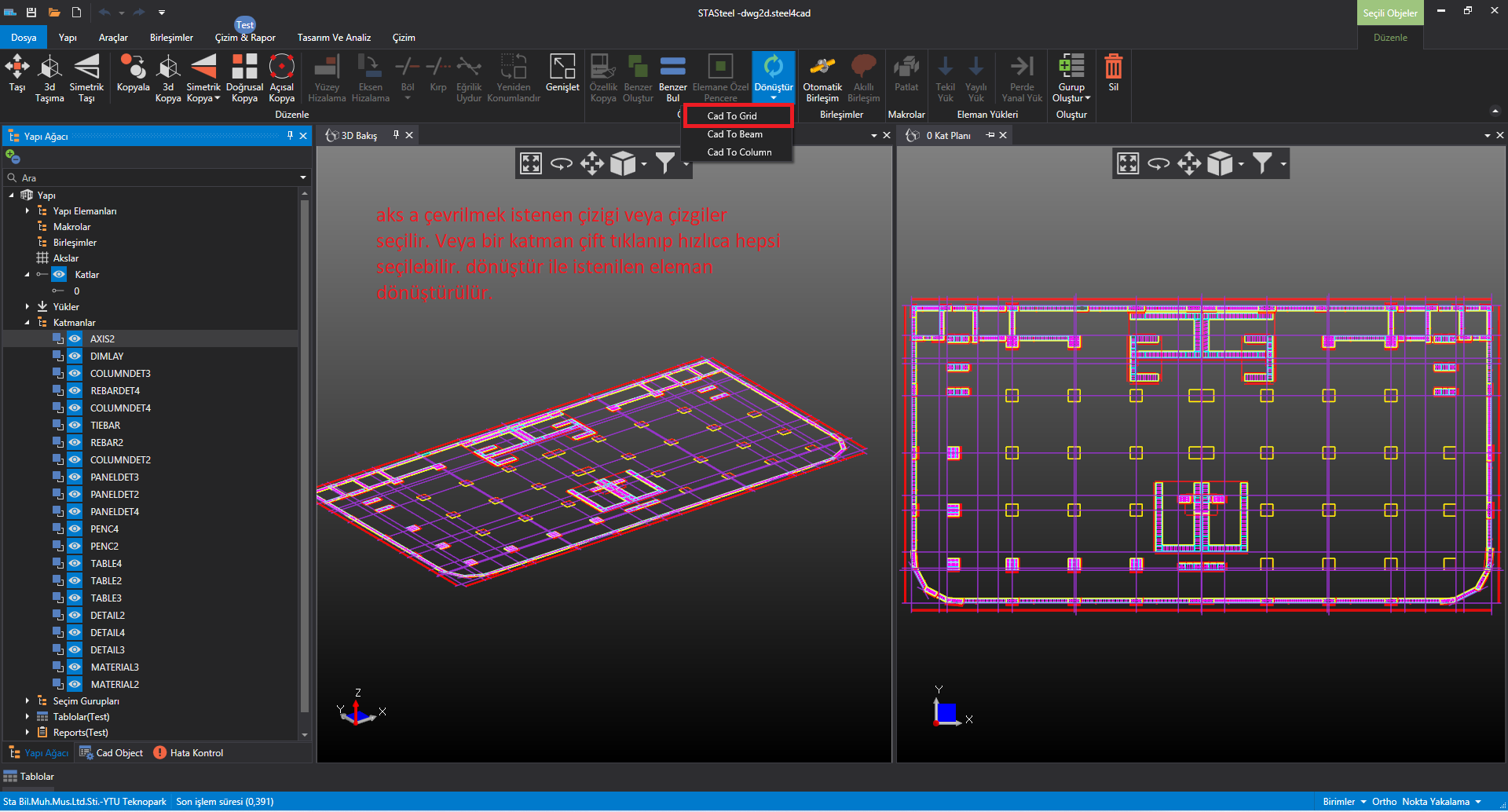 2d dwg çizimi getiriyorsunuz üzerinde ölçme imkanı ile ölçeği ayarlıyorsunuz, çizgileri akslara ve de çubuk elemanlara kolaylıkla dönüştürebiliyorsunuz.