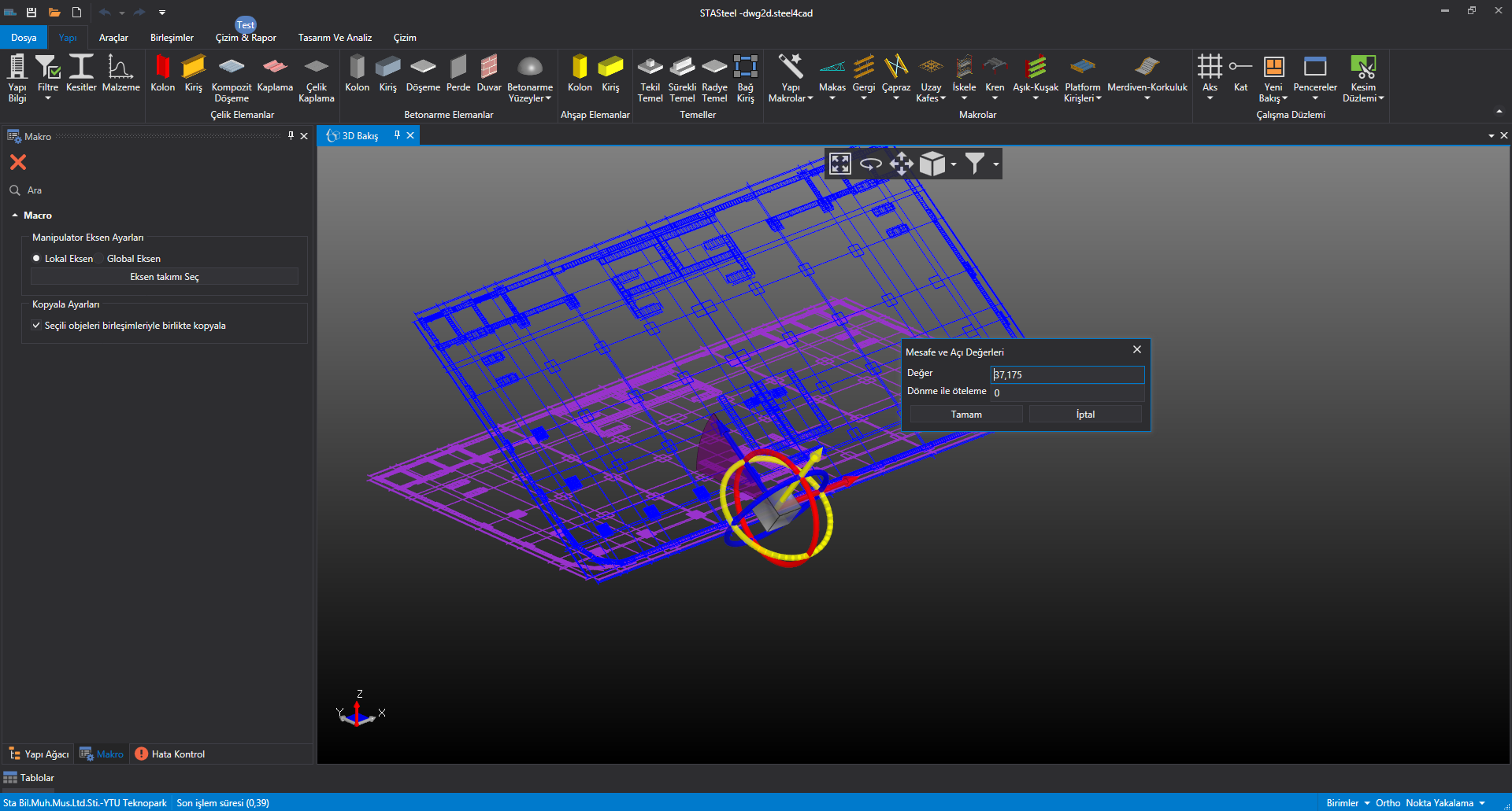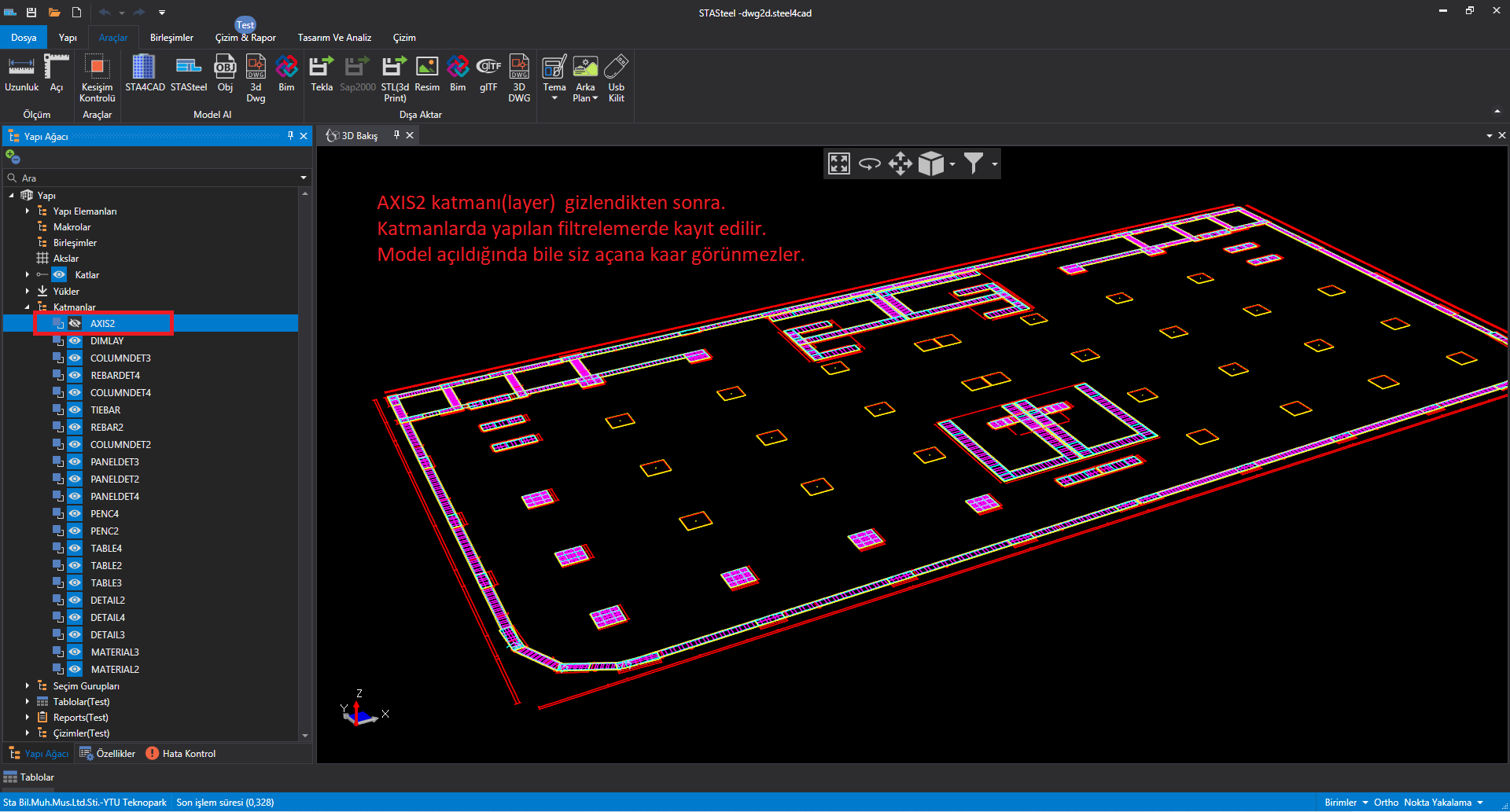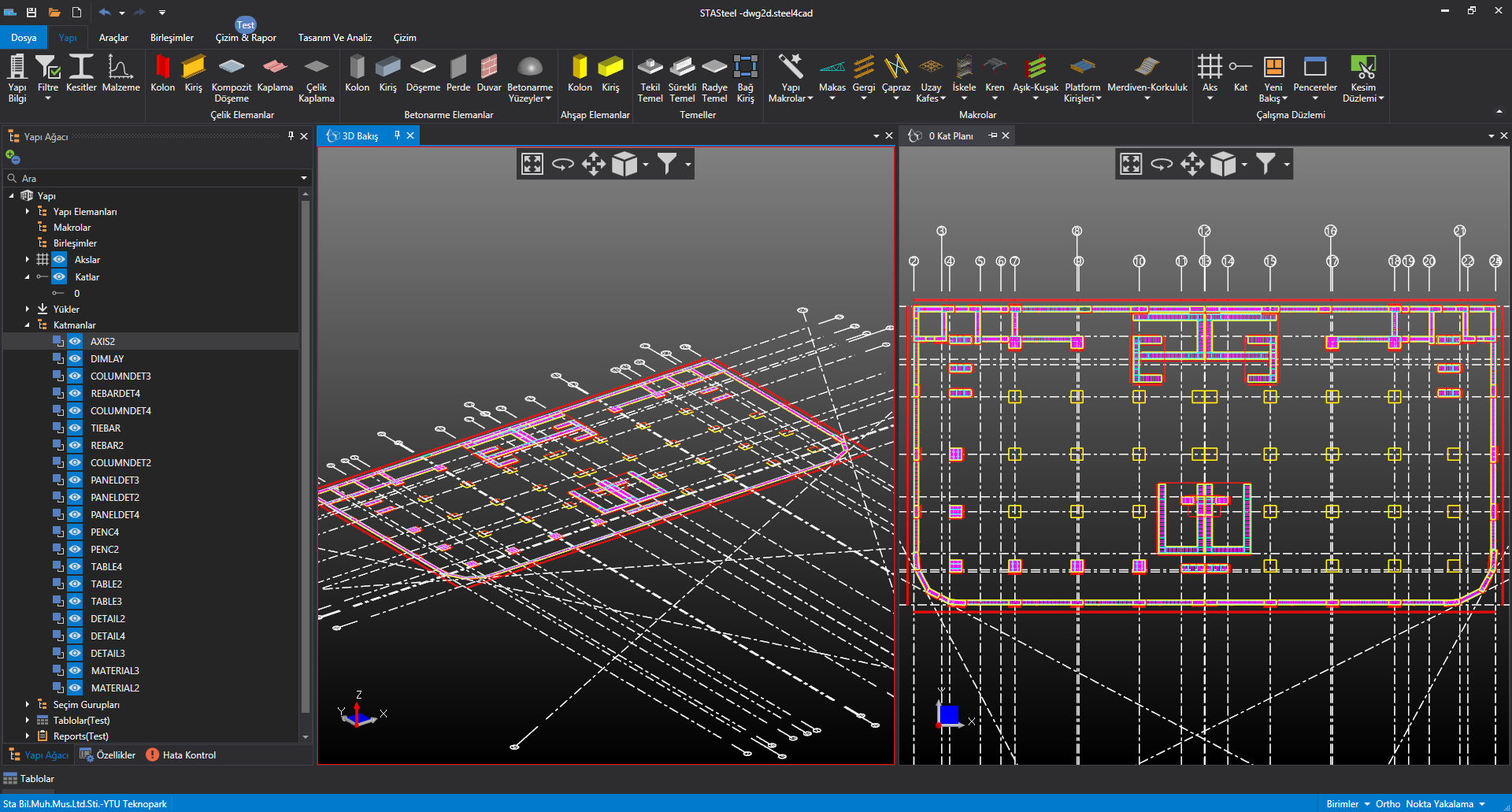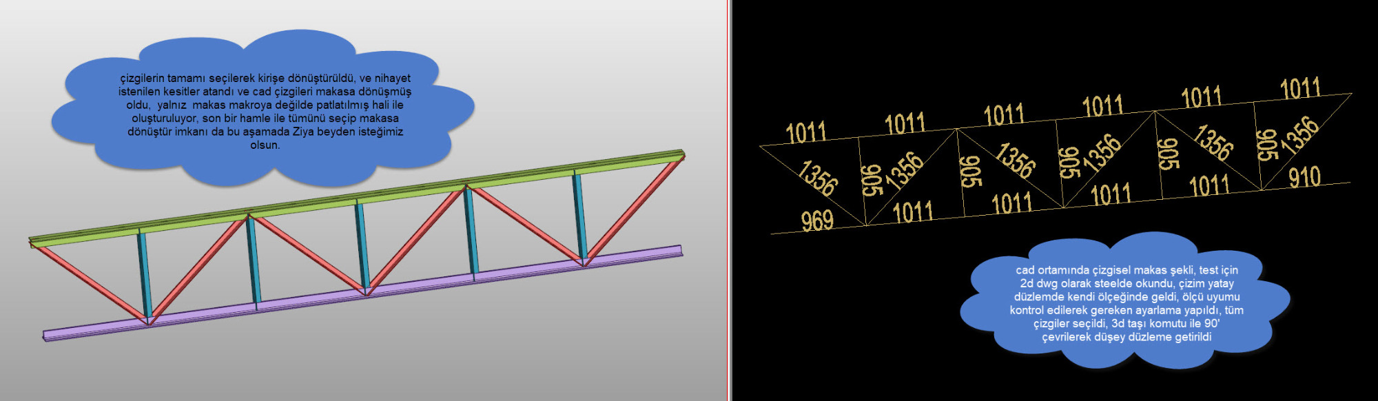 2d dwg çizimi getiriyorsunuz üzerinde ölçme imkanı ile ölçeği ayarlıyorsunuz, çizgileri akslara ve de çubuk elemanlara kolaylıkla dönüştürebiliyorsunuz.