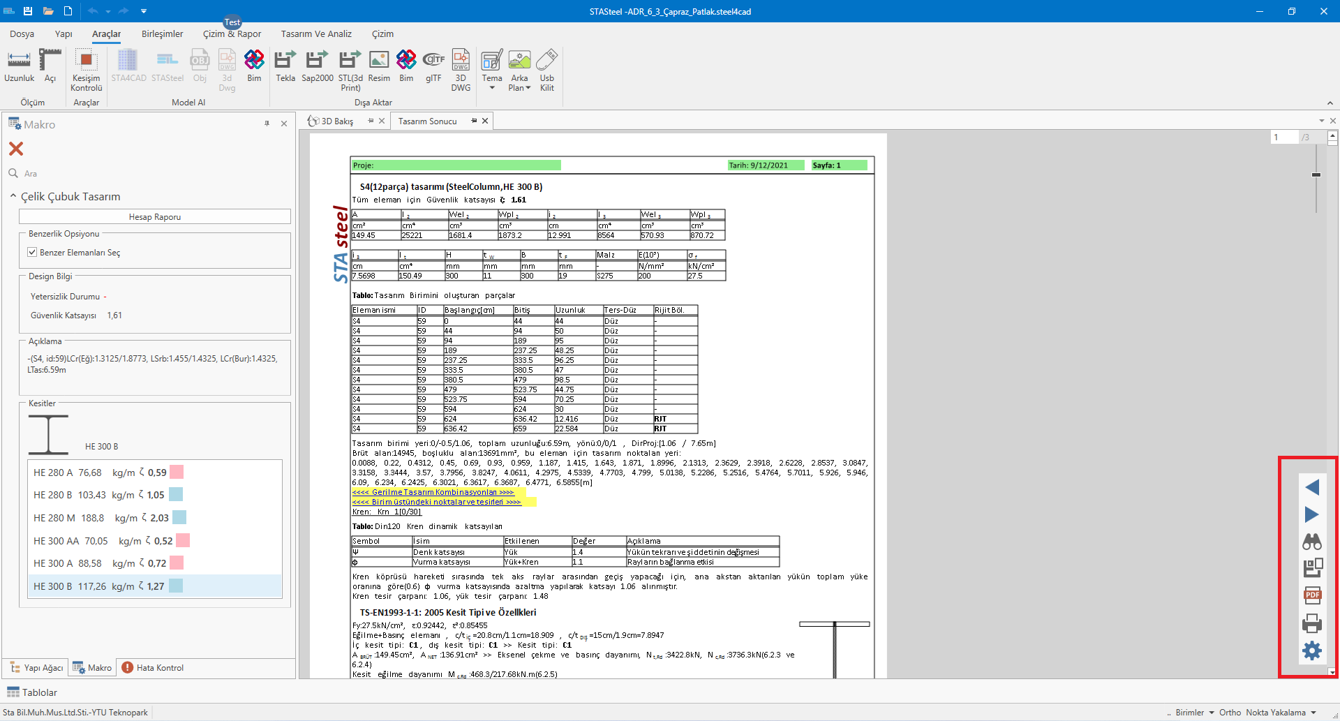 • Kren kirişlerin tasarımında ec3 e göre kesmenin eğilmem momenti üzerinde azaltmasıyla ilgili geliştirme yapıldı. Önceden kesme kuvveti eğilme dayanımını %50 den fazla azalttığı durumda program bu azaltımı %50 altına indirmiyor ve profili yetersiz olark gösteriyordu. Yeni durumda gerçek azaltma neyse uygulanıyor. Çünkü %50 altında azaltma olsa dahi yeterli gelebilen profiller yeterli olduğu halde yetersiz olarak işaretleniyordu.