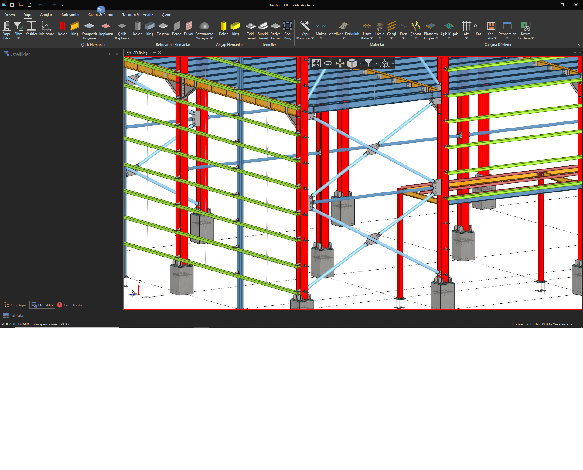 Ana taşıyıcı düşey deprem çaprazı ve çatı çaprazları ve tasarım tipleri daha net biçimde kullanıcıdan alınacak. Makrolardadüey çapraz tanımlamaya yönelik geliştirmeler yapılacak.