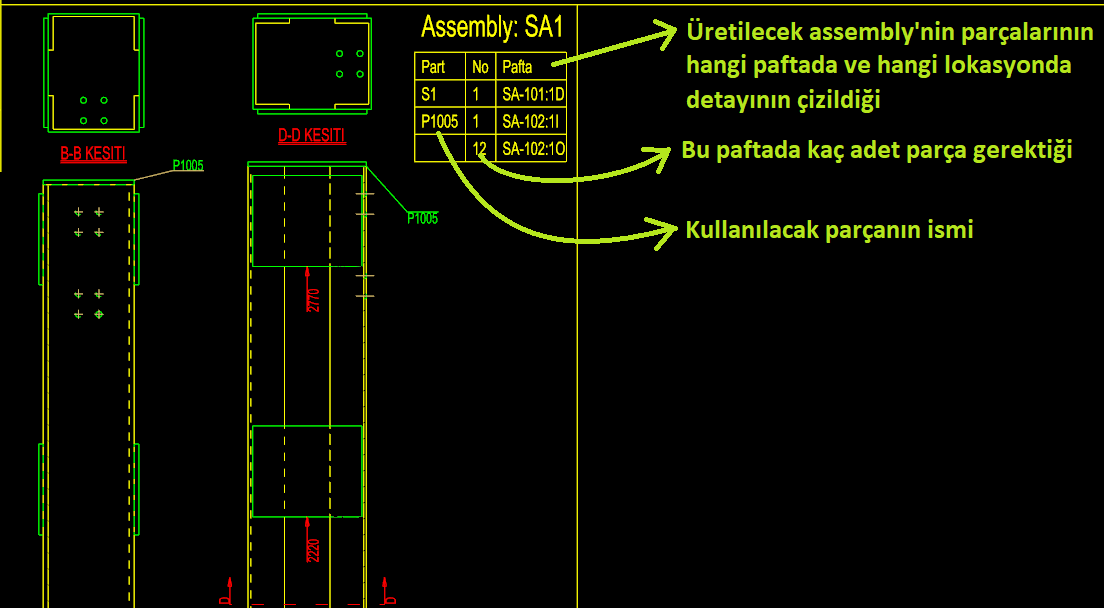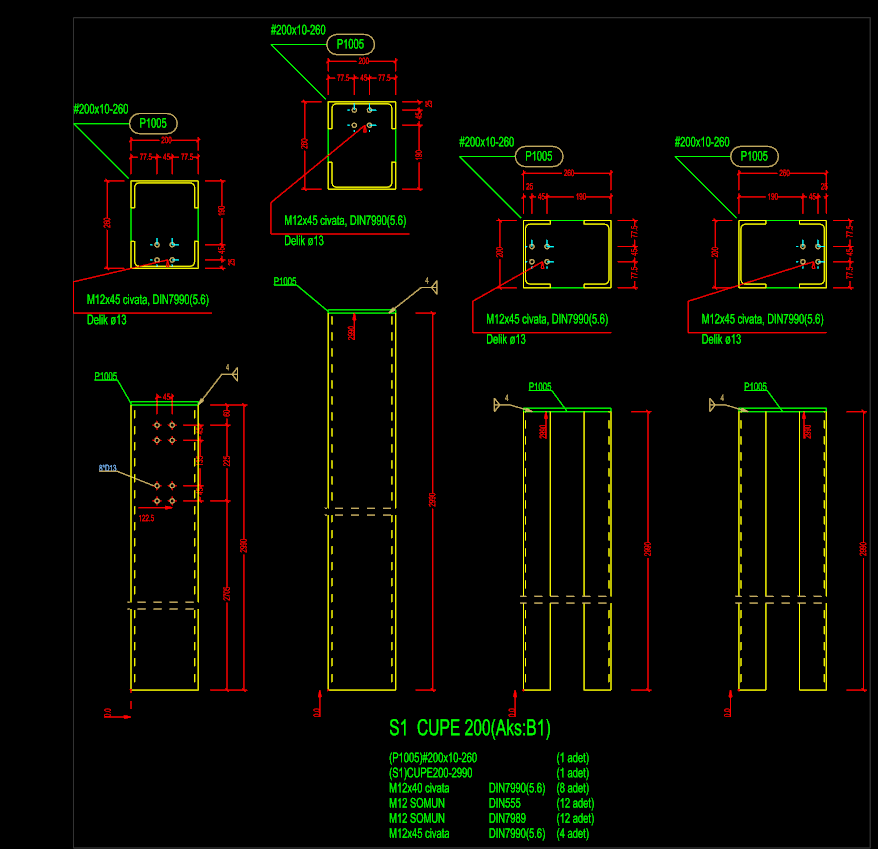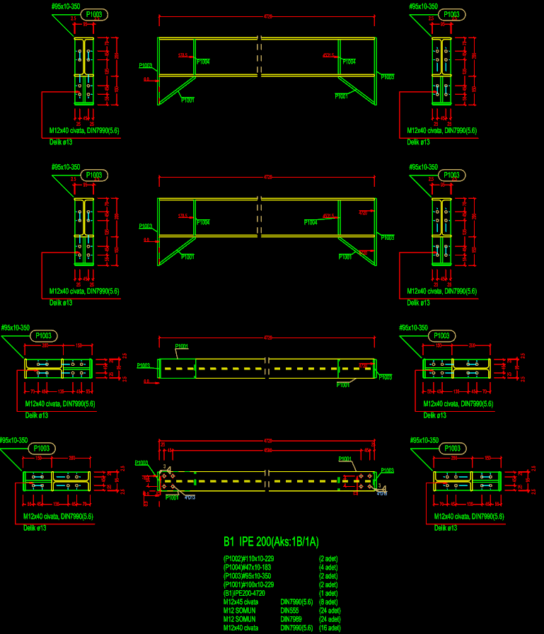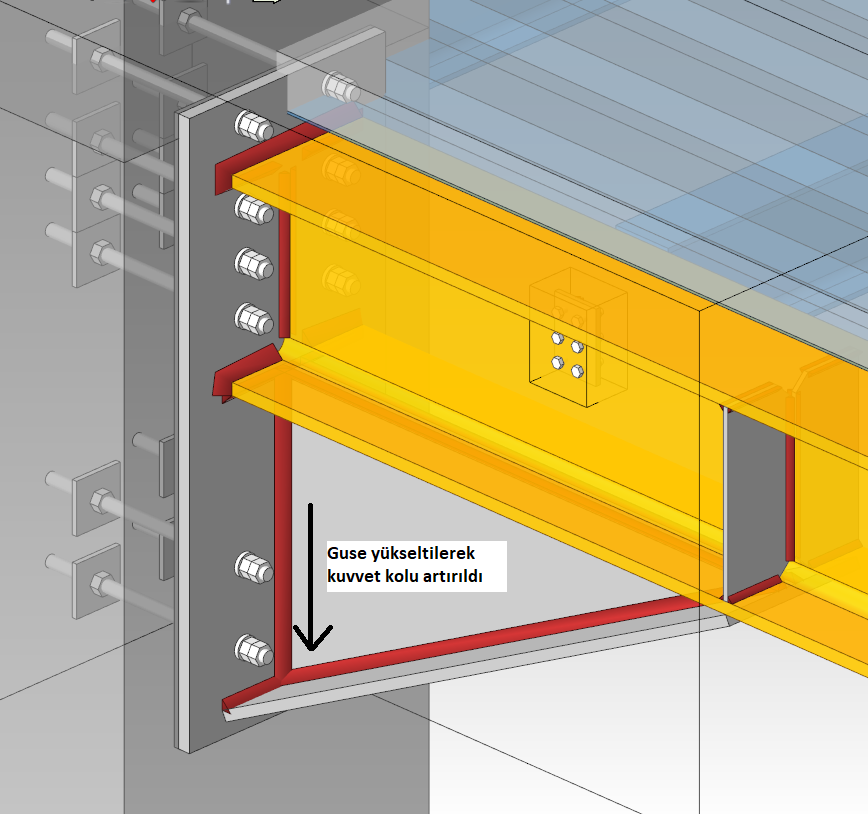 şeklindedir. Eğer guse yoksa mutlaka kiriş üstüne de bulon atılmalıdır: