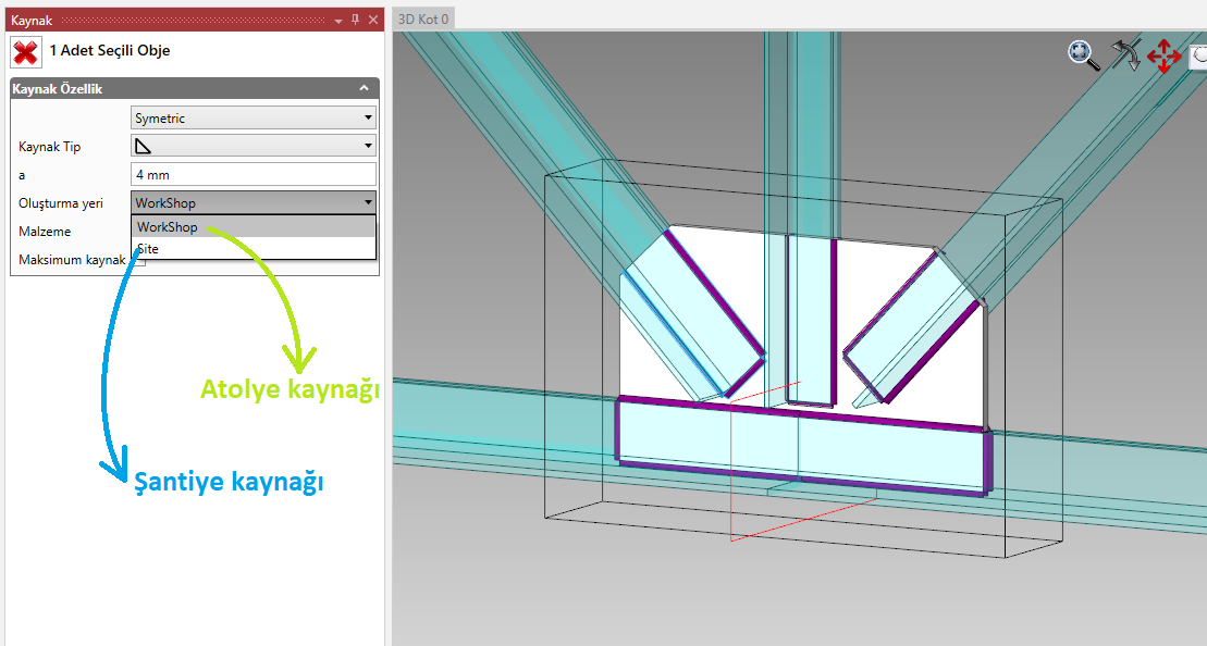 Kaynaklarda yetersizlik olması durumunda, kaynağın yeri ve hangi elemanlara bağlı olduğu modelde incelenmelidir. Guse uzatılarak kaynak alanı artırılabilir.