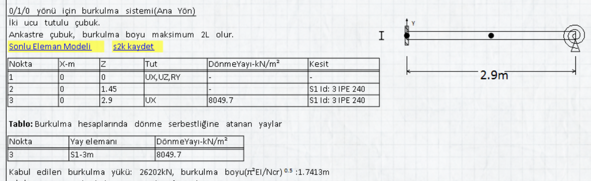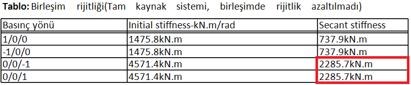 *Dönme rijitliği kNm cinsindendir. Yani ilk birleşime 2285.7kNm moment uygularsanız 2285.7kNm/2285.7kNm=1(birimsiz=radyan) birim dönme elde edersiniz.