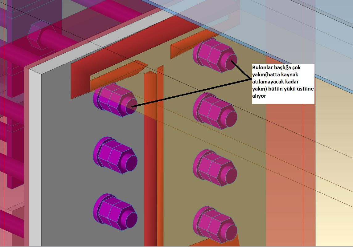 Örneğin kolon-kiriş bağlantılarında sık kullanılan bulonlu sistemde: