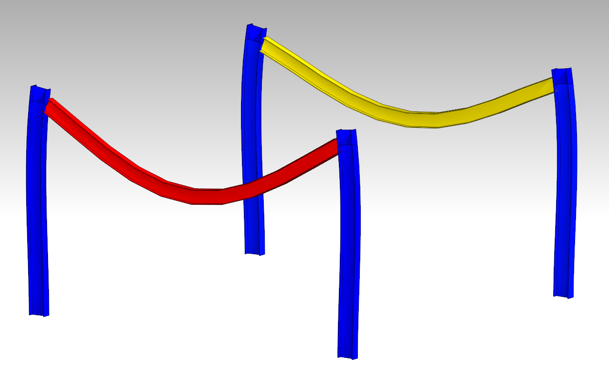 Görüldüğü gibi aynı yükle yüklenmiş iki çerçevenin şekildeğiştirmesi farklı durumdadır. Ayrıca güçlü birleşim dağılımda rijit davranacak ve momenti üstüne çekecektir: