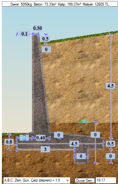 İstinat Duvarı Projesinde istinat duvarı yüksekliği örneğin; 5m olması durumunda Sta4CAD'in İstinat Duvarı Programında; İstinatın topuk yüksekliği 50cm olması durumunda sağ tarafta girilecek yükseklik değeri 5-0.50=4.50m mi olmalıdır? (Sormak İstediğim uzunluk sağ tarafta yazan 4.5m değeri??)
