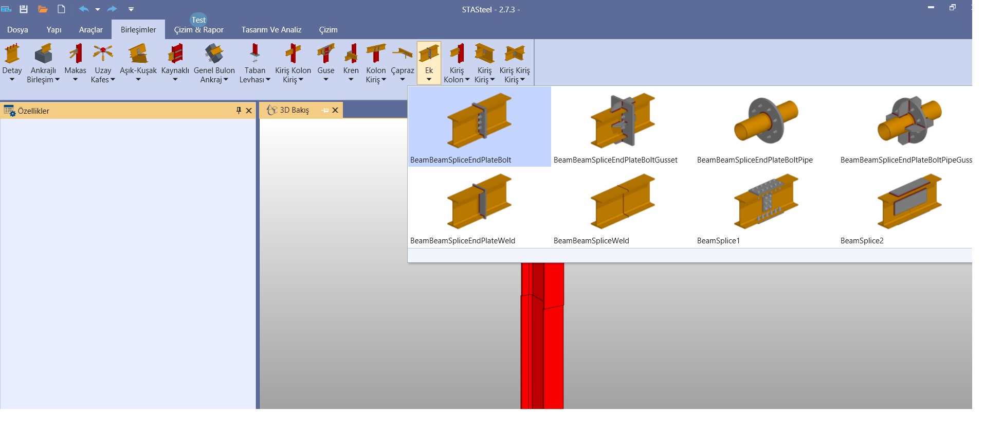 Program ilk çıktığında kolon ekleri ve kiriş ekleri ayrı ayrı birleşim olarak sunuluyordu. Ancak aslında kiriş eki ve kolon eki aslında tamamen aynılar. Program kolon veya kiriş hangi elemanı bağladığını bildiği için sadece iki çubuğu bağlayan ek birleşimleri yeterli. Birleşim hesabı olarakta program neyi bağladığını bildiği için gerekli ise ek kontrolleri yapabiliyor.