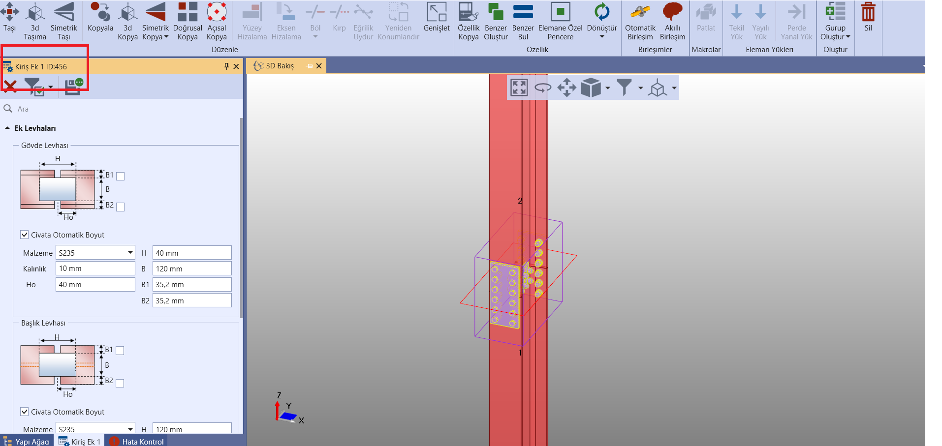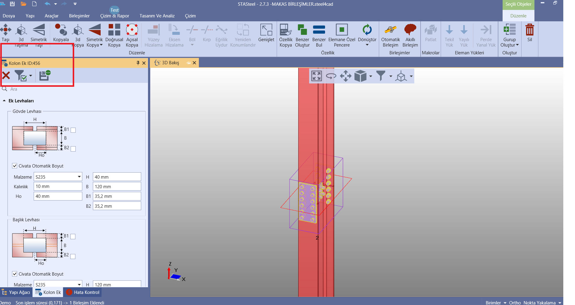 Tahmınımce kolon ıcın kolon ek hesabı hatta kaynaklı ve bulon ıcın 2 ayrı hesap algorıtmada var ancak bırlesımler menusunde acılması unutulmus.