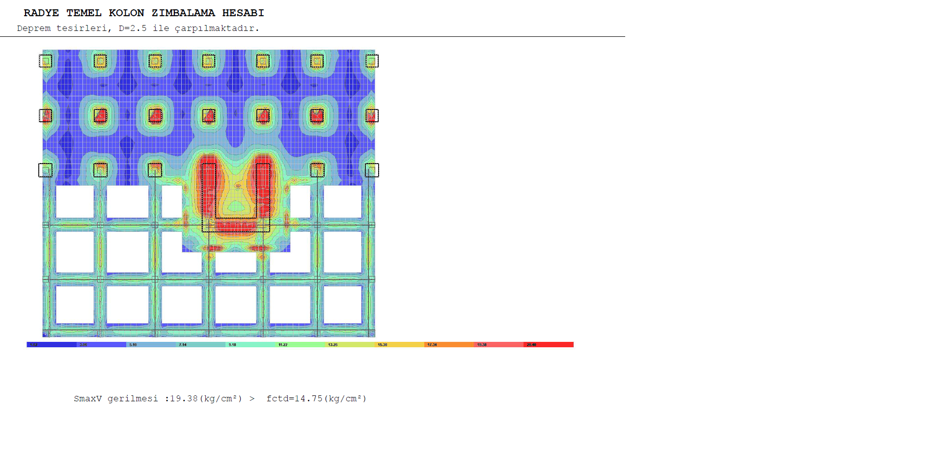 Radye temel hesap raporunda zımbalama kontrolunde herhangı bir yetersizlik olmaması ragmen Smax>fctd cıkmaktadır.