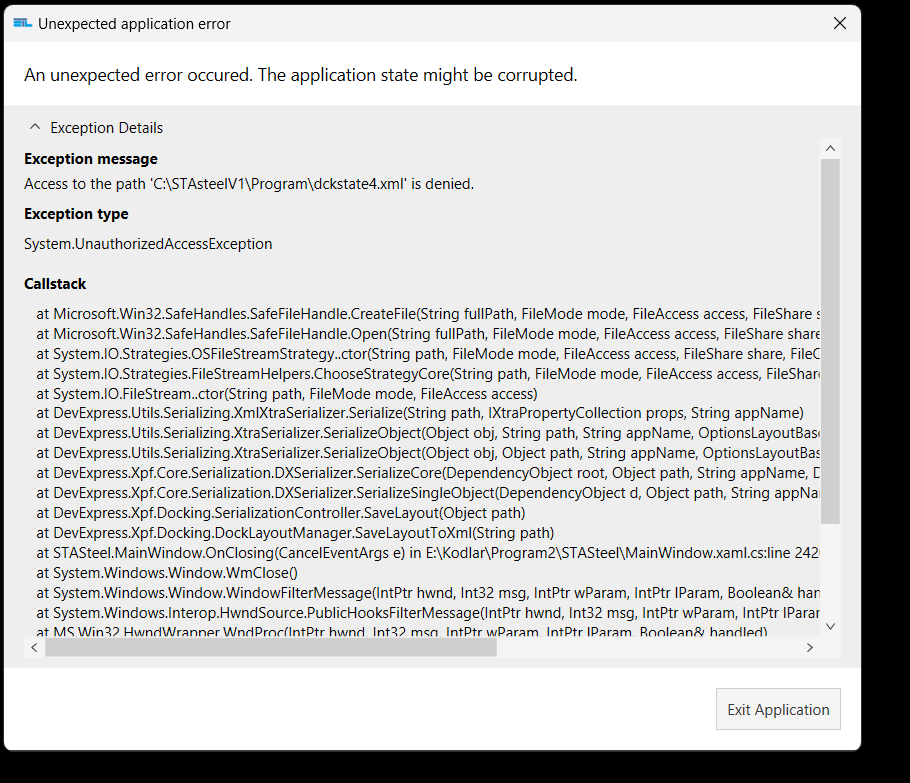 Program her kapandığında pencere durumlarını dckstate4.xml dosyasına kayıt eder. Ama bu dosyaya kayıt yapamıyor.