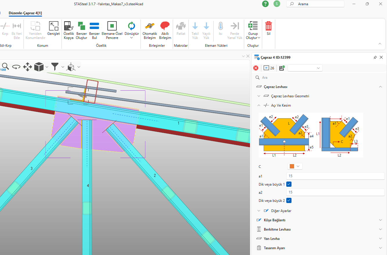 2)Yeni çapraz ve makas birleşimlerinde iki ana profil bulunan durumda levhada gerekli olan noktanın iç bükey olması sonucu silinmesi sorunu giderildi.