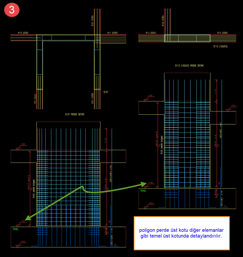 asansör kuyusu tasarlarken poligon perdemizde asansör kuyusuyla alt kota gidiyor ve asansör kuyusu etrafı perde kalınlığında oluyor temel kalınlığında olmuyor. Maalesef stadestekten yardım alamadığım için son umudum burası. Benim tasarlamak isteidğim şey açık ve net sadece temelin alt kota inmesini istiyorum ama program perdeyi alt kota atıyor ve ortaya saçma bir şey çıkıyor perde 2,72 kat yükseliğinde olması lazımken -1,50 mt kot a indiği için 4,22 mt lik poerde oluyor ve perde kalınlığın otomatik olarak artırılması hatası geliyor. Bu hatayı nasıl düzeltebilirim bir fikri olan var mı bu konuda bana yardımcı olabilir msiiniz arkadaşlar.