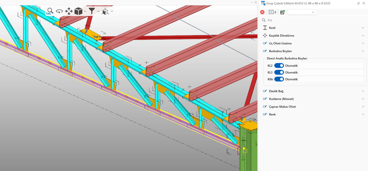 7) The ability to define buckling length for elements within the macro has been added. Elements can be selected using the Alt key or Ctrl+Alt key, and the editor can be used. This eliminates the need to explode the macro for buckling length definition.