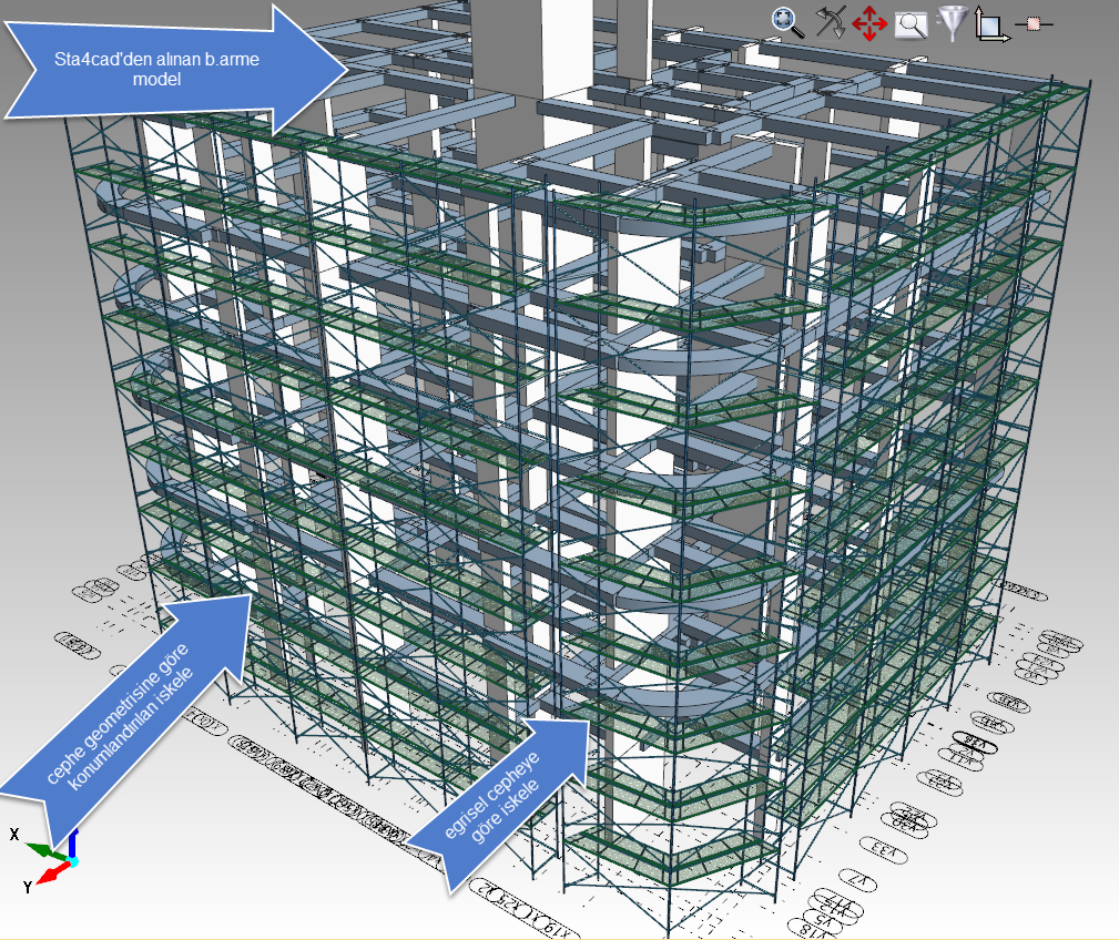 STA4CAD ten alınan model rapor resmi ve binaya göre iskelenin yerleştirilmesi içindir. STA4Cad den alınan model analiz ve tasarıma kapalıdır.
