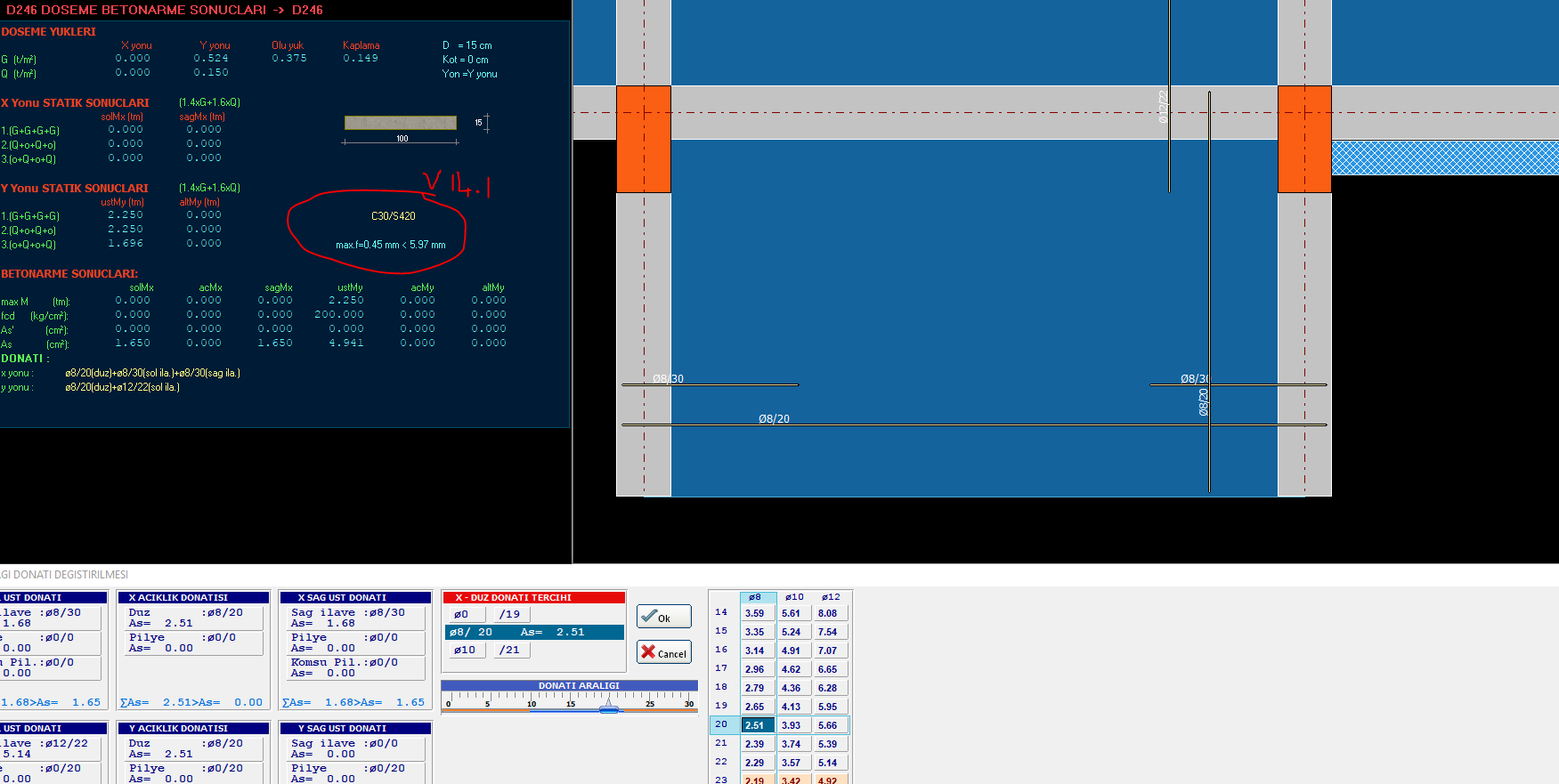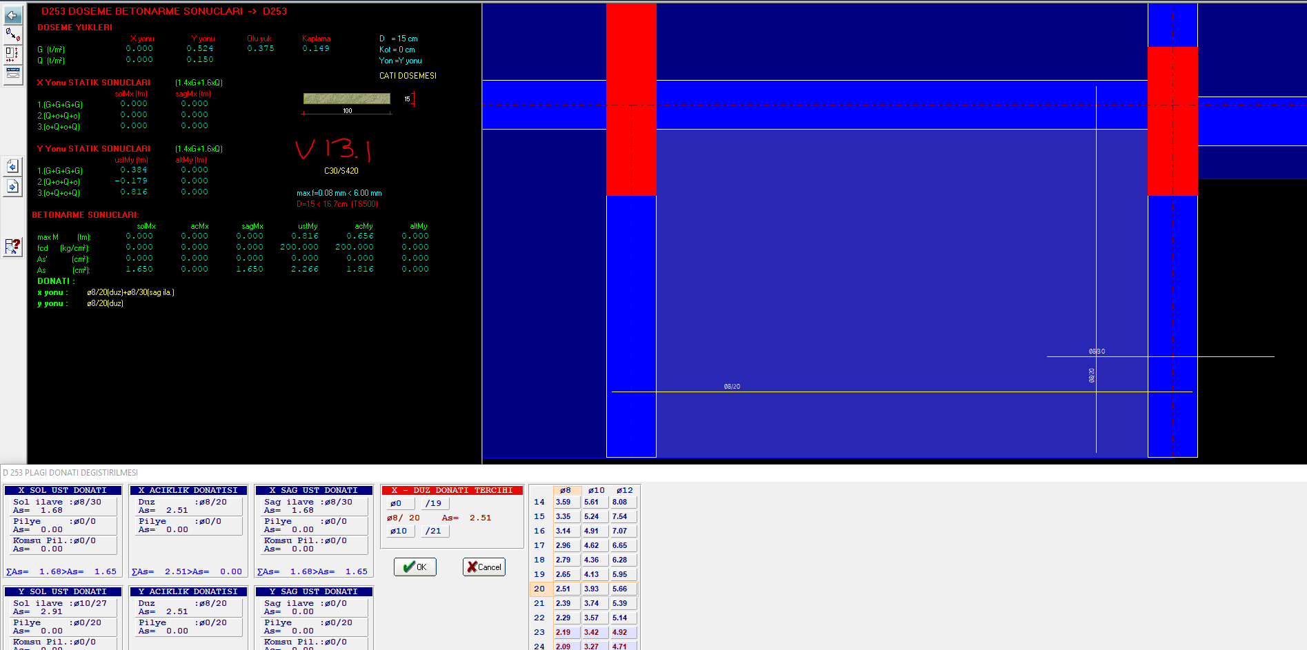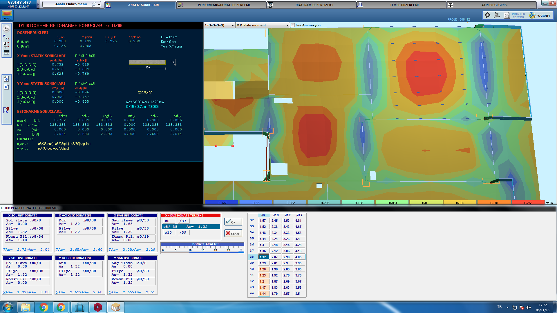 Döşeme tasarım kısmında açıklık ve kenar kısımlar için tasarım momentleri verilmekte. Ana grafik ekranda gösterilmesi için talebi iletiyorum.