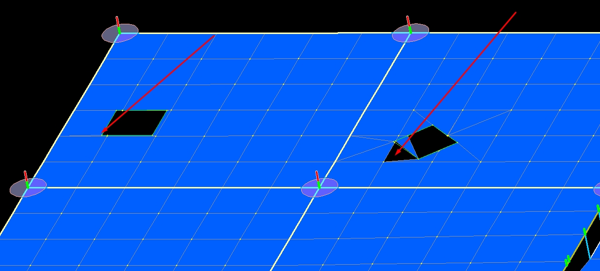 üç resimde göstermeye çalıştım, daha önce de gödermiştim. bu döşeme sonlu elaman ağları düzgün oluşmuyor. boşlukların kenarını bağlamıyor...bu konua görüşü olan var mıdır...