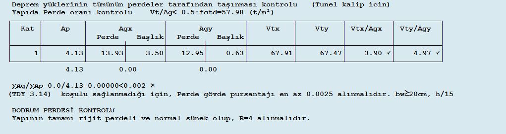 Perdeler herhangi bir hata vermedi ama genel deprem raporunda bir uyarı dikkatimi çekti. Yönetmelikten kontrol ettim sağlıyor ama program sağlamadığını söylüyor.